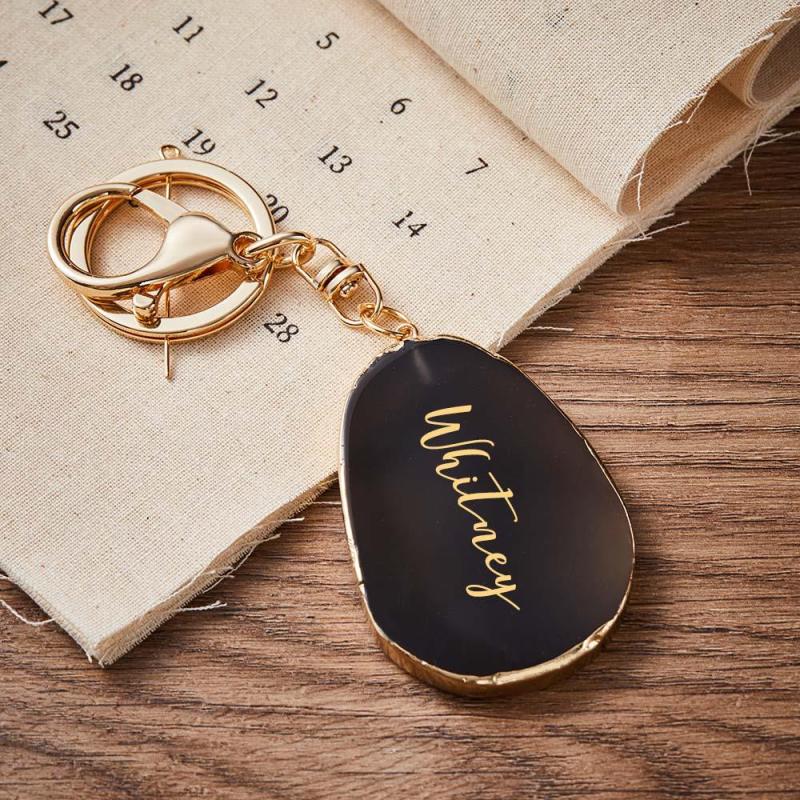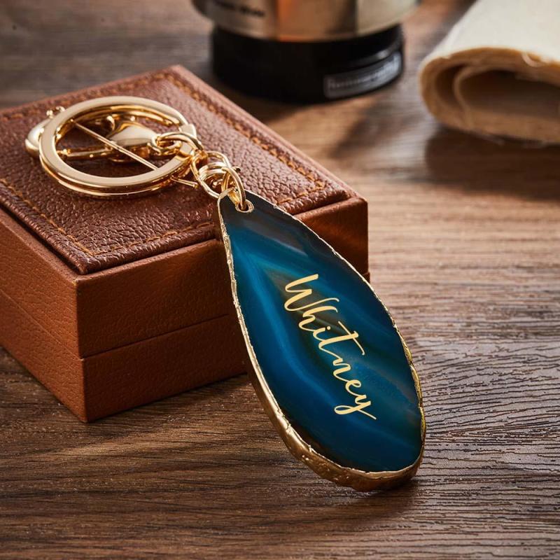 Agate Engraved Keychain Personalized Natural Stone Key Chain Gift For Her