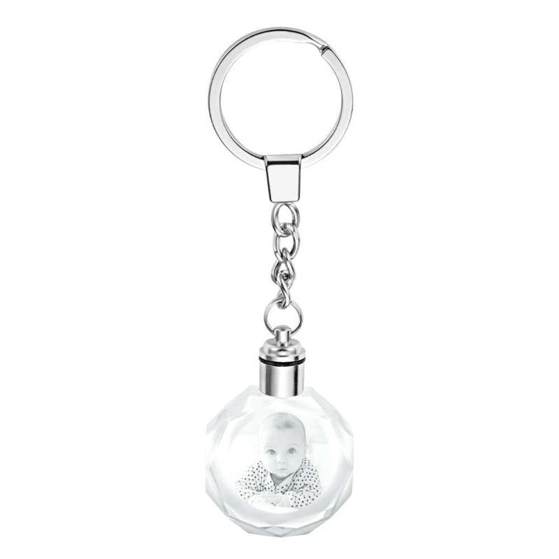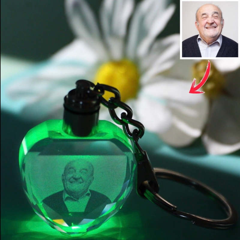 Always in my heart Custom Crystal Couple Photo Round Key Chain Gifts for Grandpa Grandma