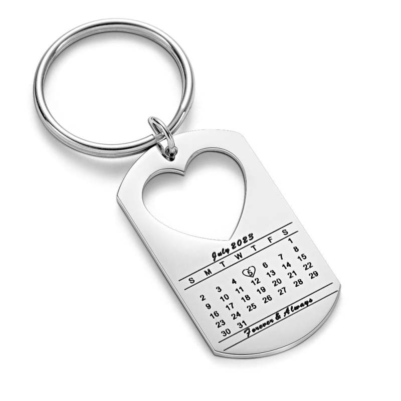Anniversary Gift Unique Calendar Keychain Personalized Date Engraved Keychain for Husband