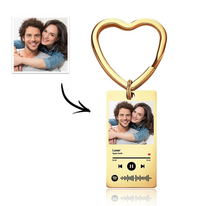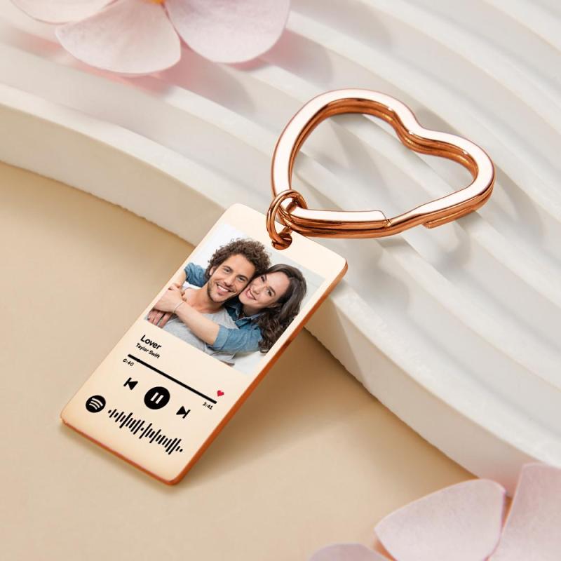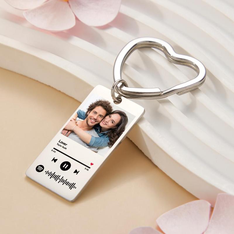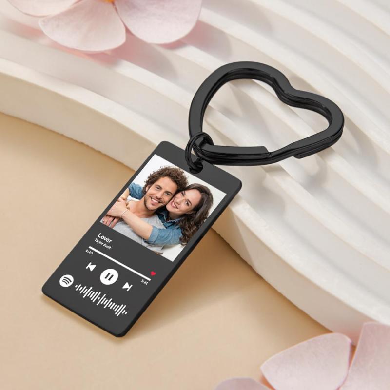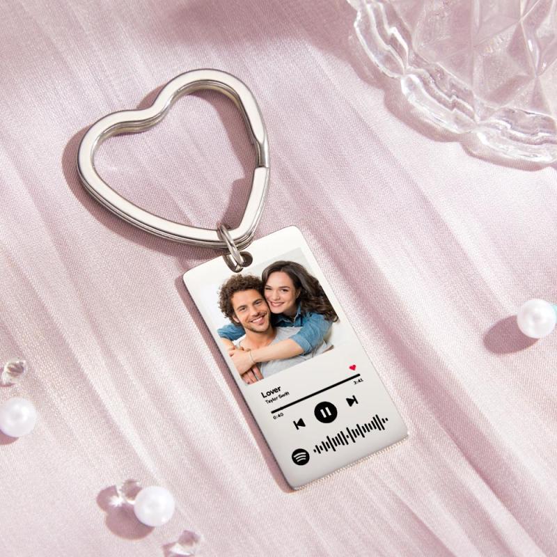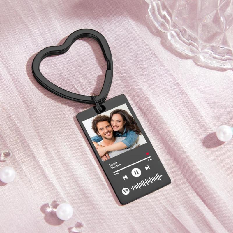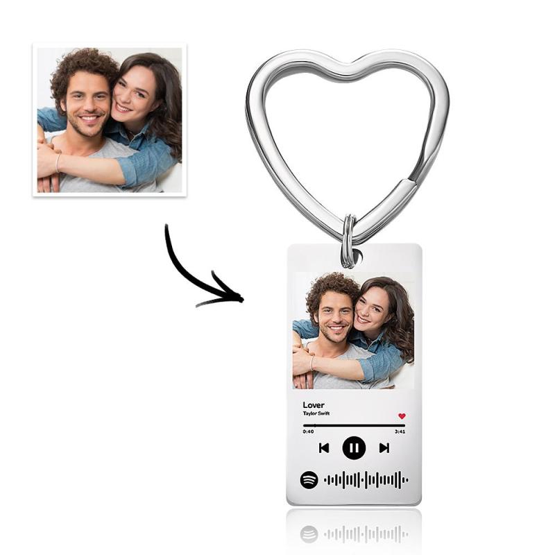 Custom Spotify Keychain Custom Photo Keychain Heart Ring Custom Gifts