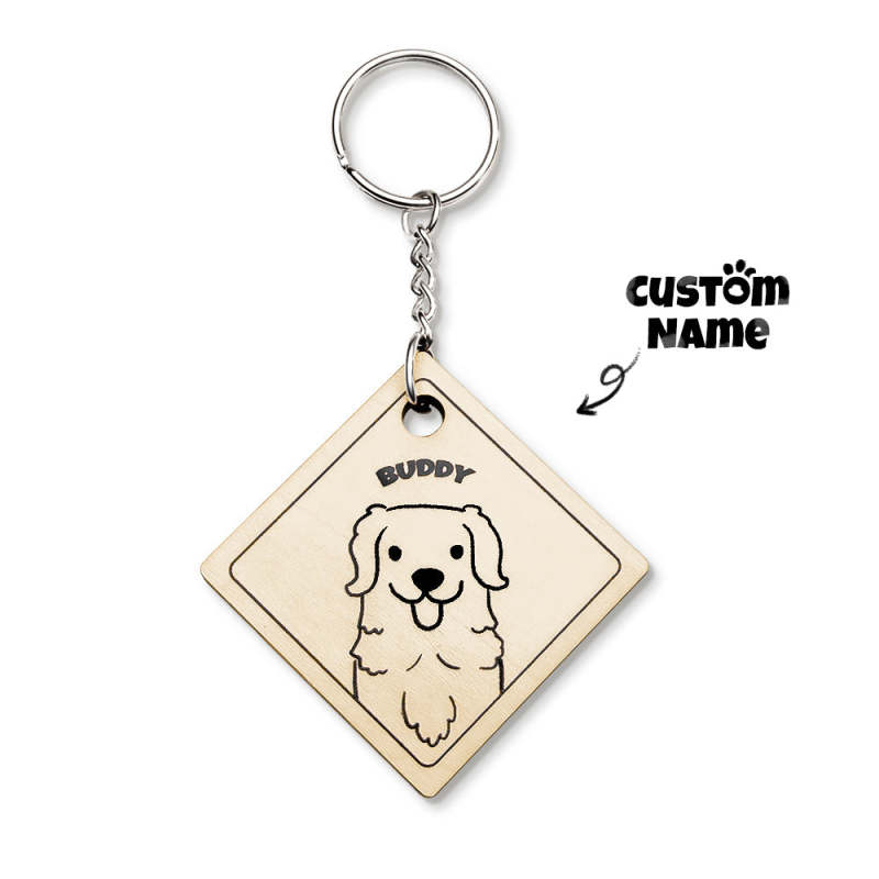 Custom Cartoon Pet Photo and Name Personalized Wooden Keychain Gift for Pet Lovers