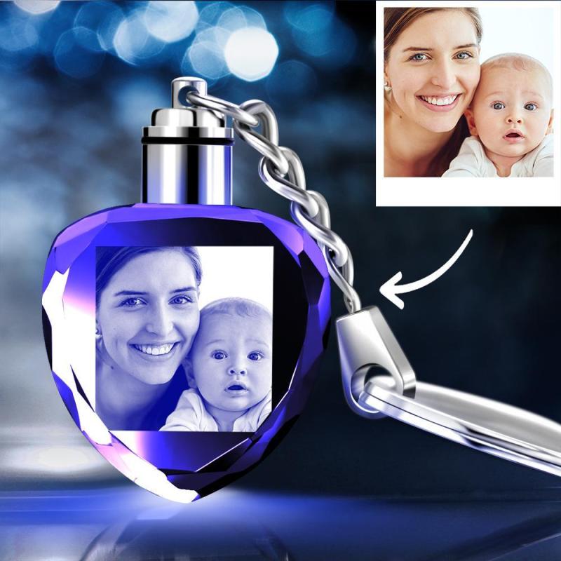 Custom Crystal Heart Shape Photo Keychain Mother's Day Gifts