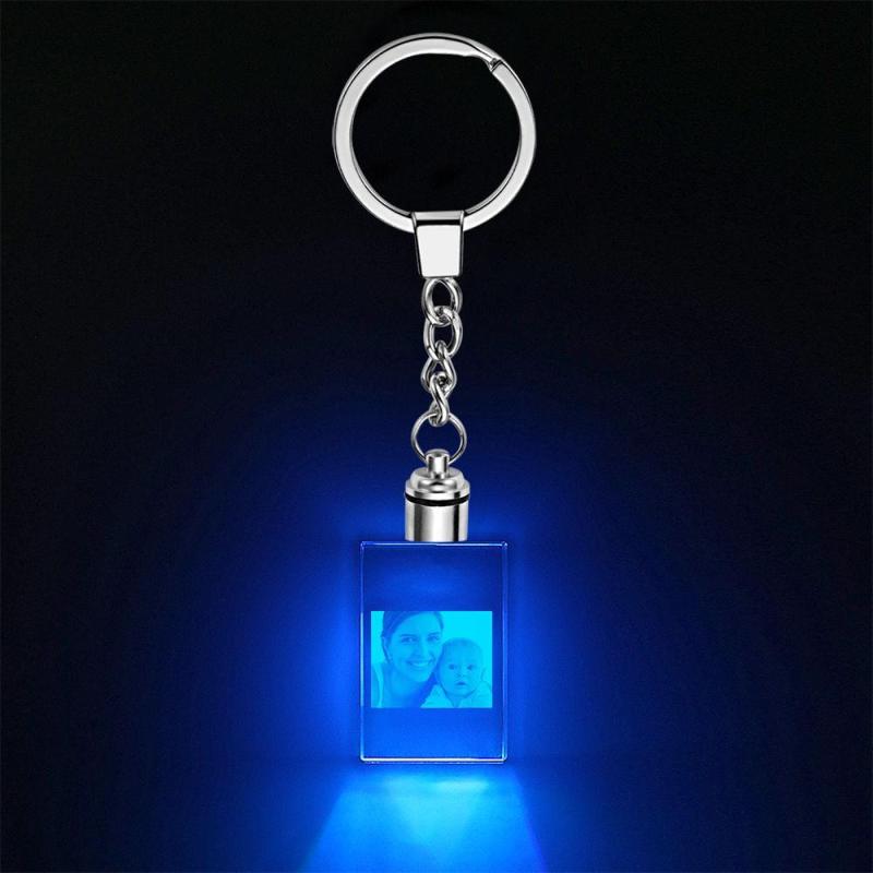 Custom Crystal Rectangle Shape Couple Photo Keyring Kissing