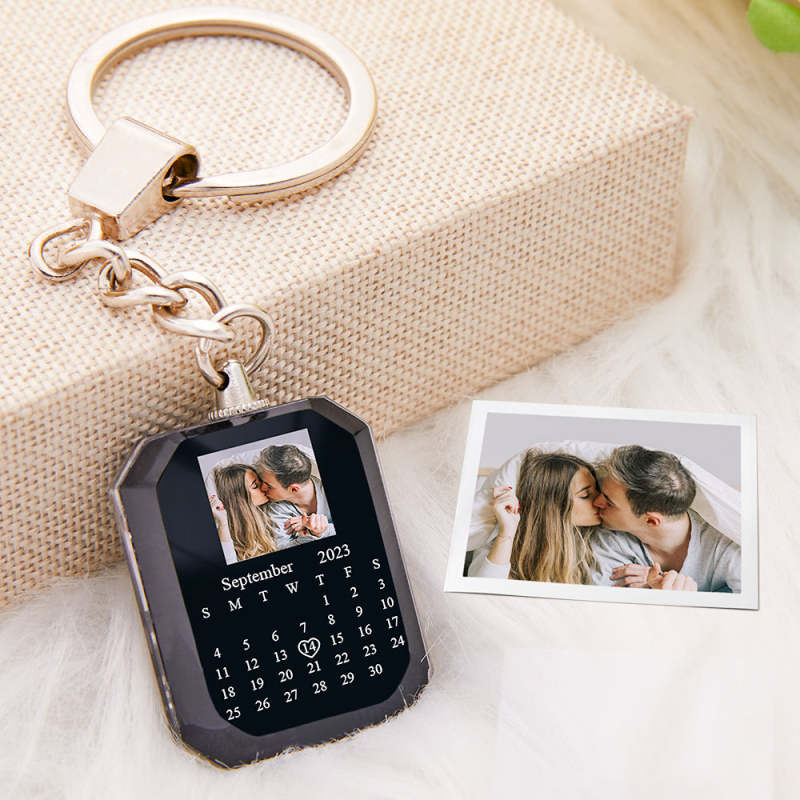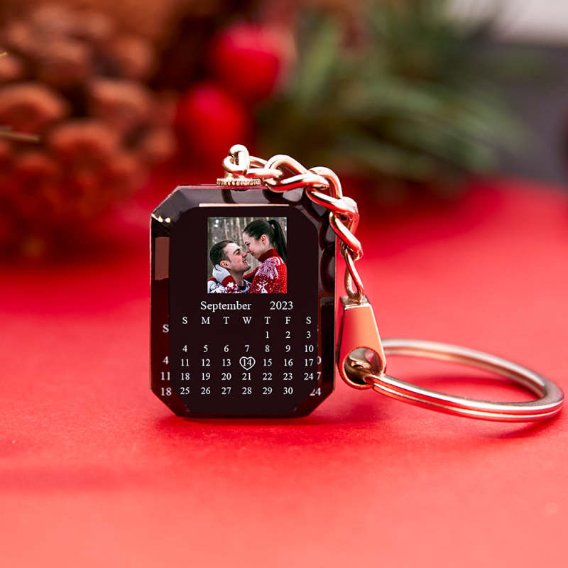 Custom Date Keychain Personalized Calendar Keychain Crystal Anniversary Gifts for Couples