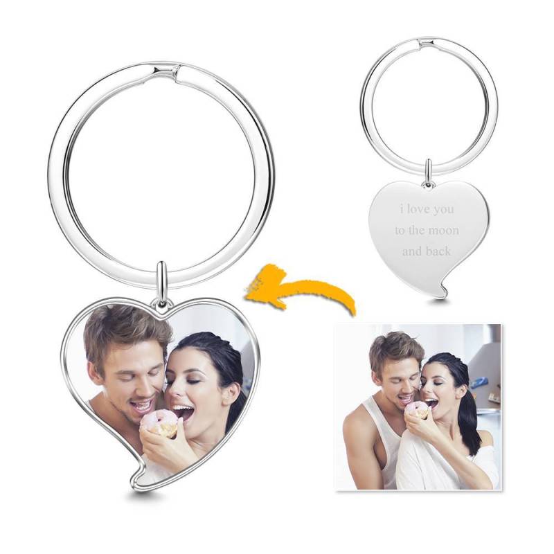 Custom Engraved Heart Tag Photo Keyring Silver Best Gift