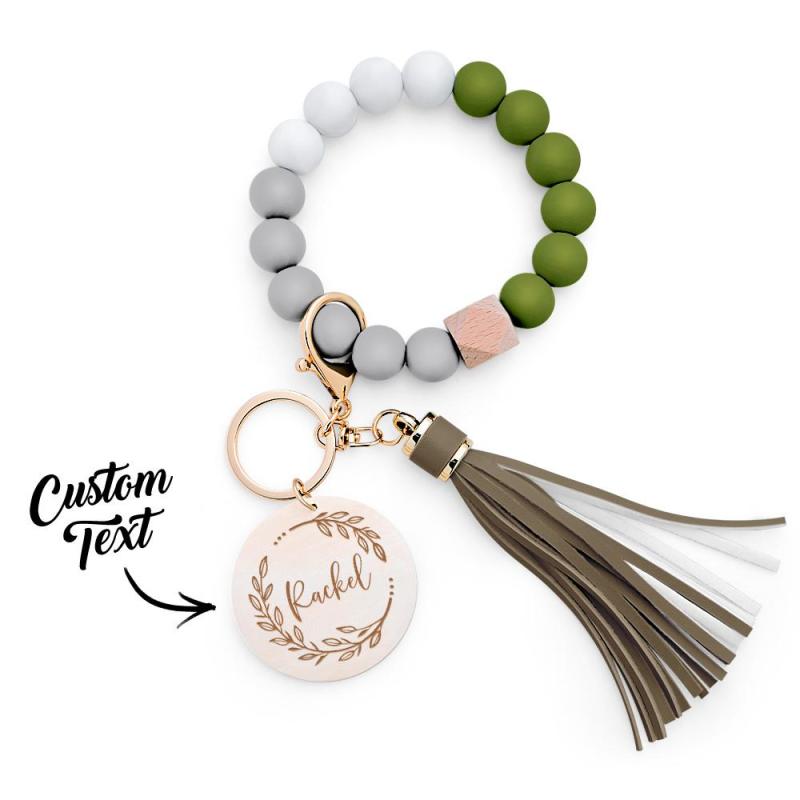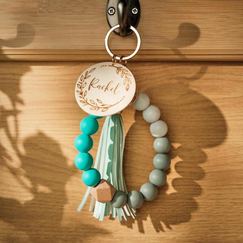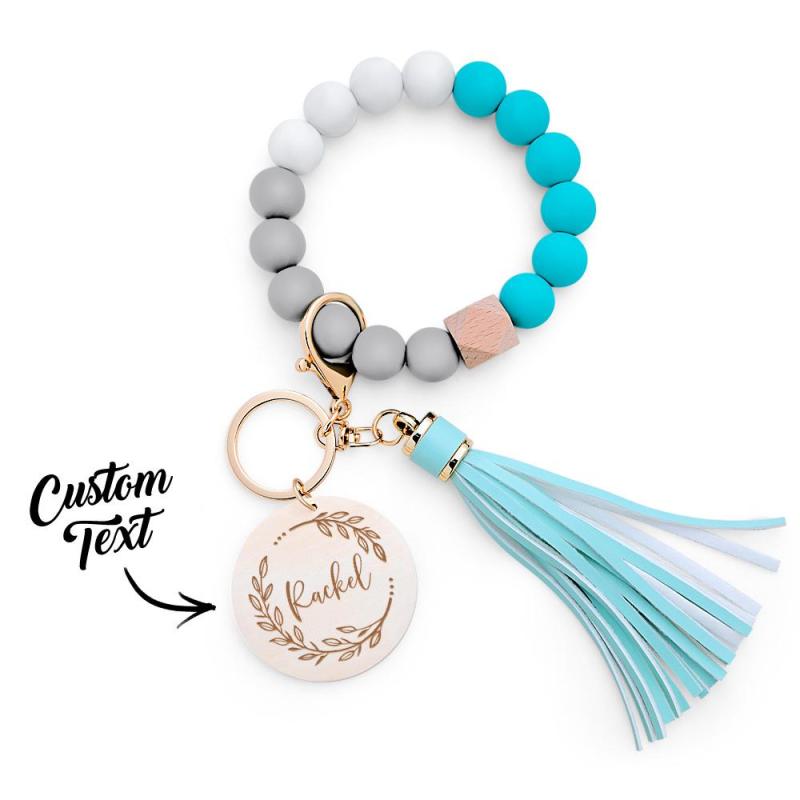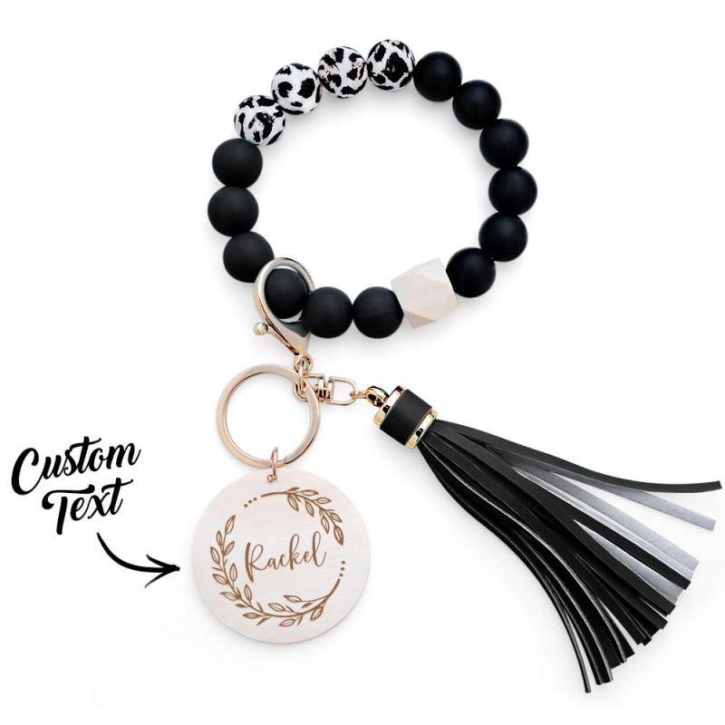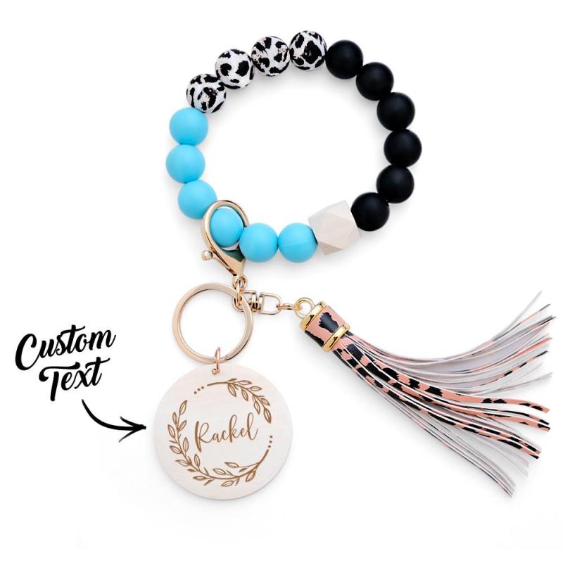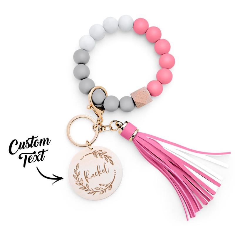 Custom Engraved Keychain Silicone Wristlet Bracelet Tassel Creative Gifts