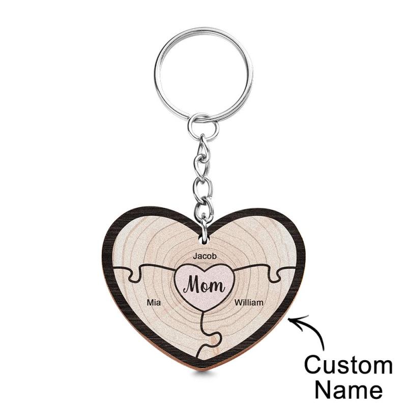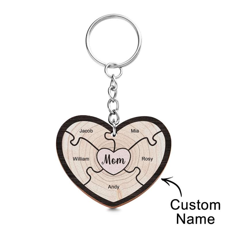Custom Engraved Keychain Wooden Heart Creative Puzzle Gifts for Grandma