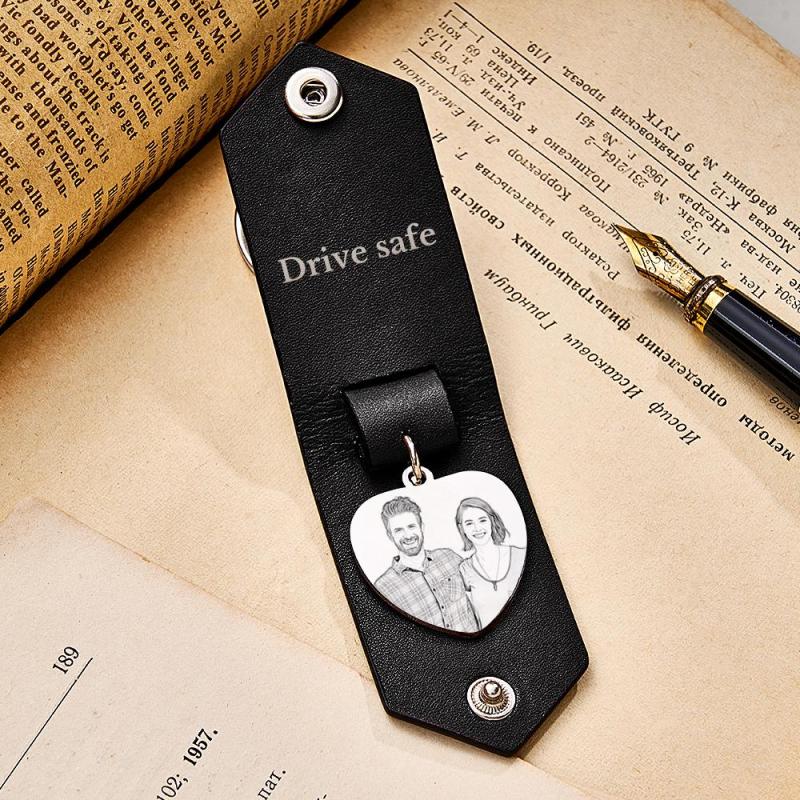 Custom Heart Shaped Photo Leather Keychain With Text Annivesary Gifts For Men