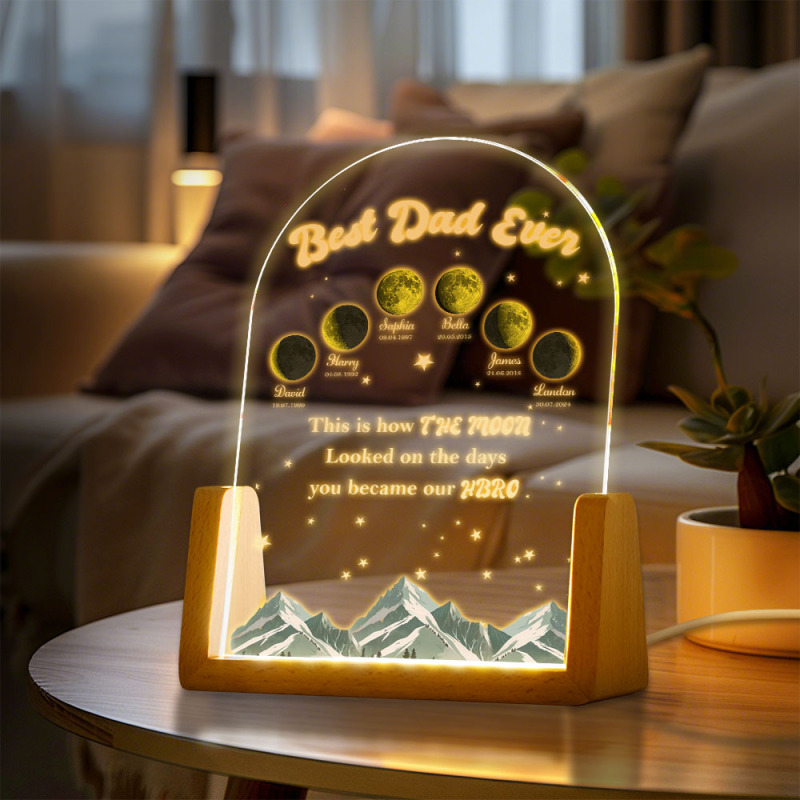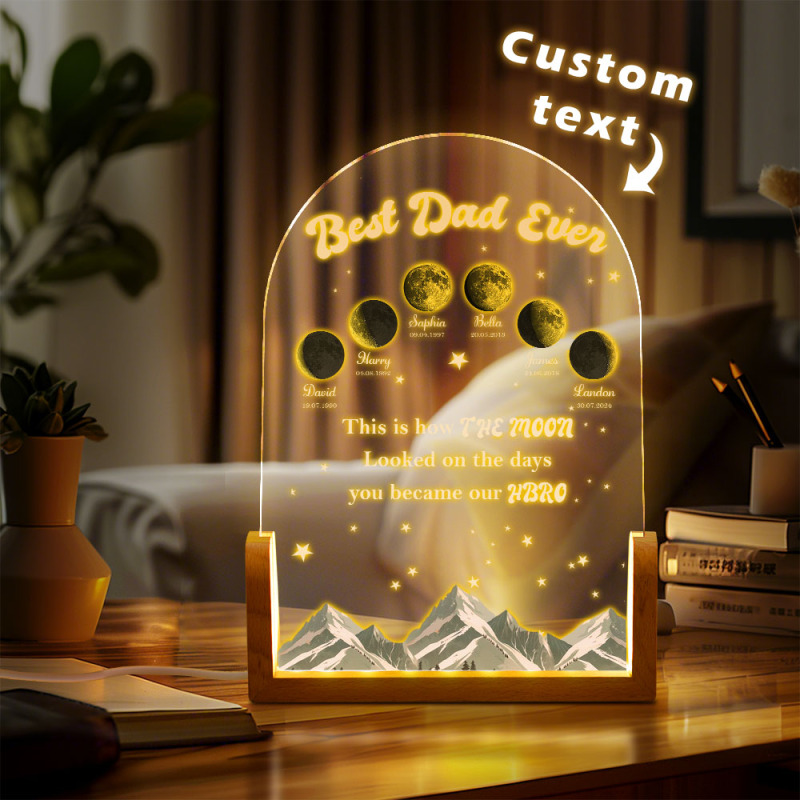 Custom Moons DAD Phase LED Night Light, Personalized Moons Phase with Kids Names, Father's Day Gifts, Gift for Dad, Night light Moon Phase