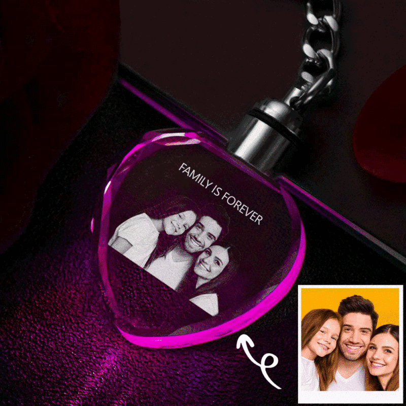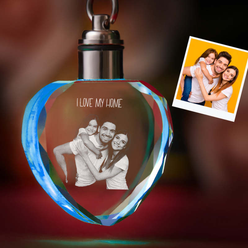 For Family Custom Photo Crystal Keychain Family Keepake Crystal Keychain Heart Shape Photo Keychain