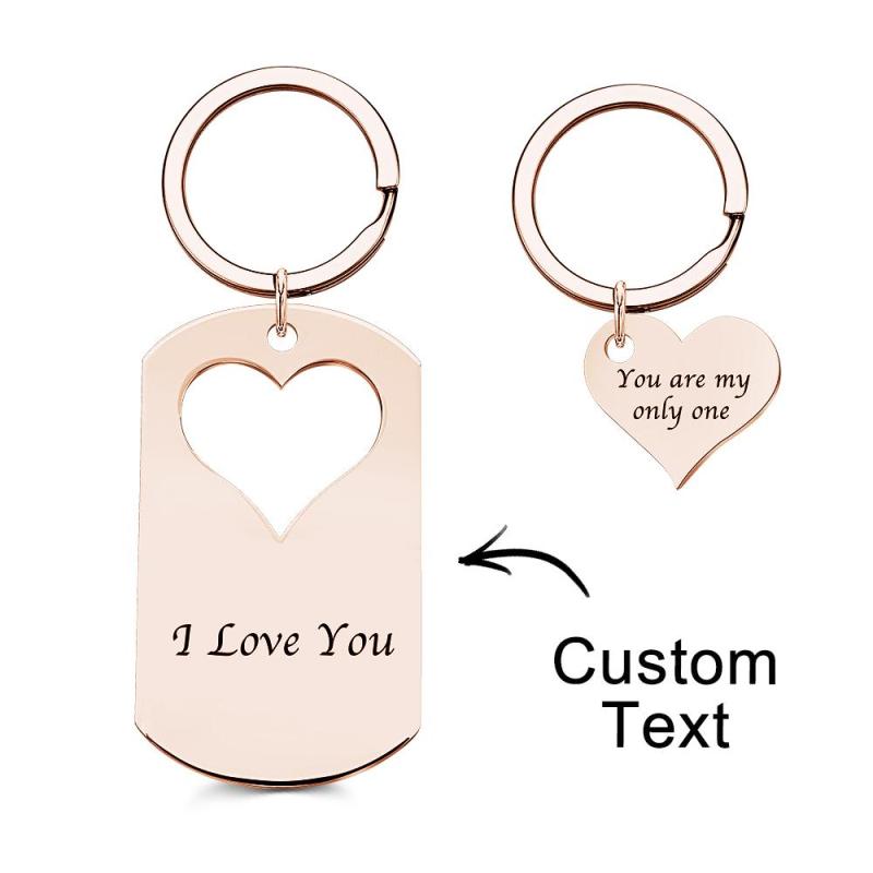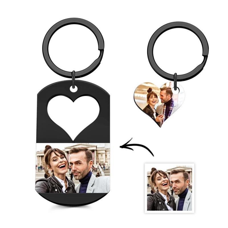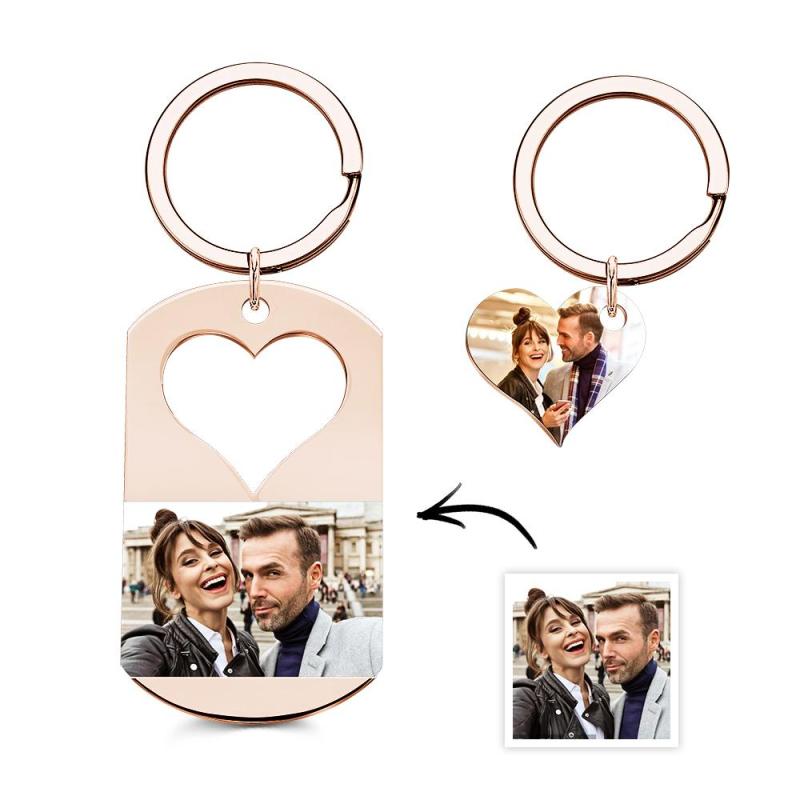 Custom Photo Engraved Keychain Creative Heart A Pair Couple Gifts