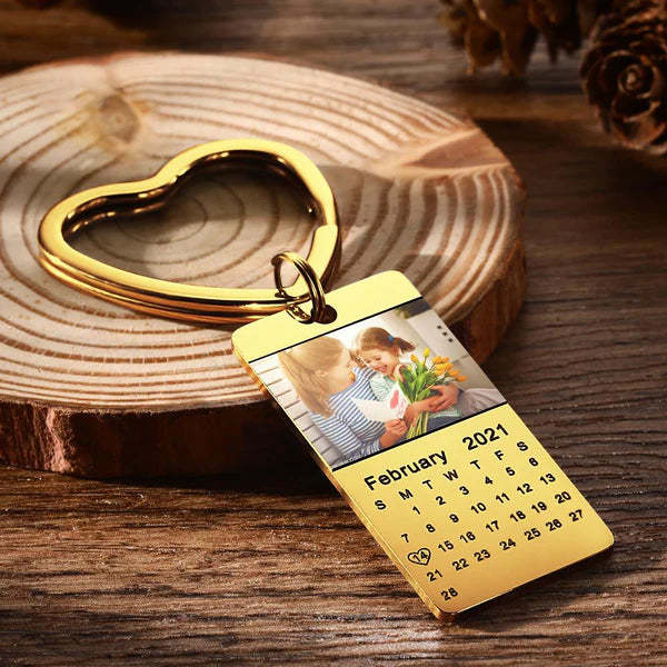 Custom Photo Keychain Calendar Keychain Golden Color Christmas Gifts for Him