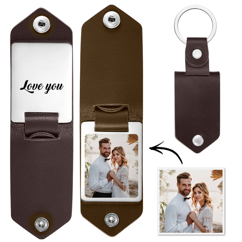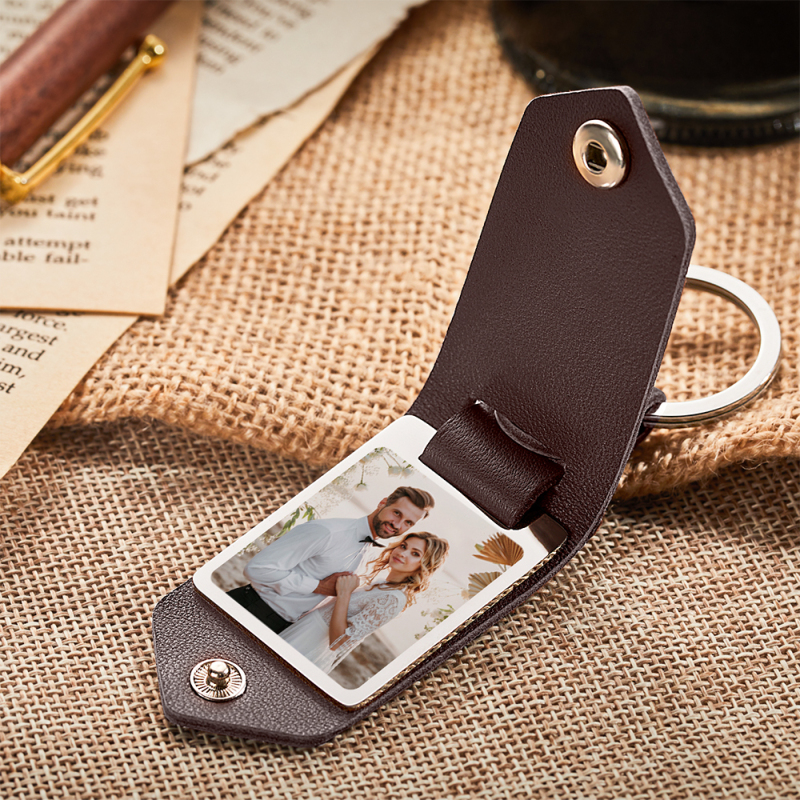 Custom Photo Keychain Engraved Keychains Leather Gifts for Couple