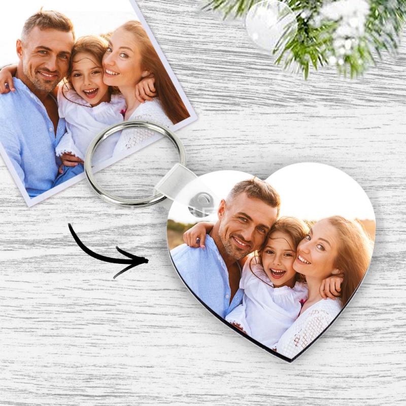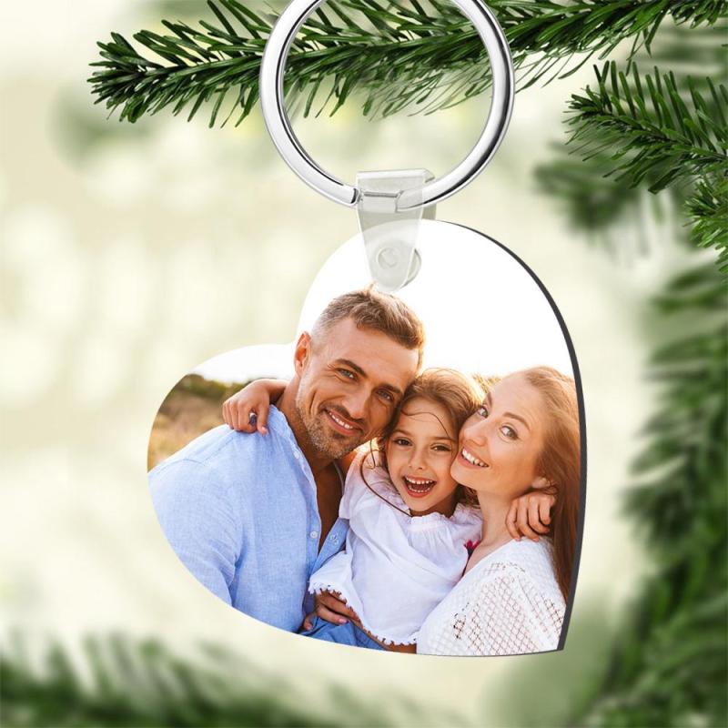 Custom Wooden Photo Keyring Memorial Gift Heart Shape Decorations