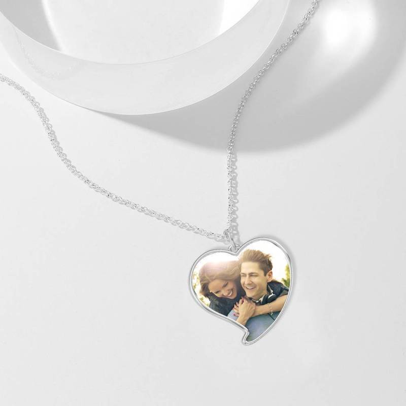 Custom Photo Necklace Silver Stainless Steel Engraved Heart For Love