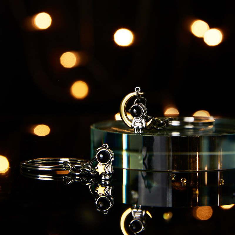 Custom Photo Projection Keychain Astronaut Moon and Star Keychain Creative Gift