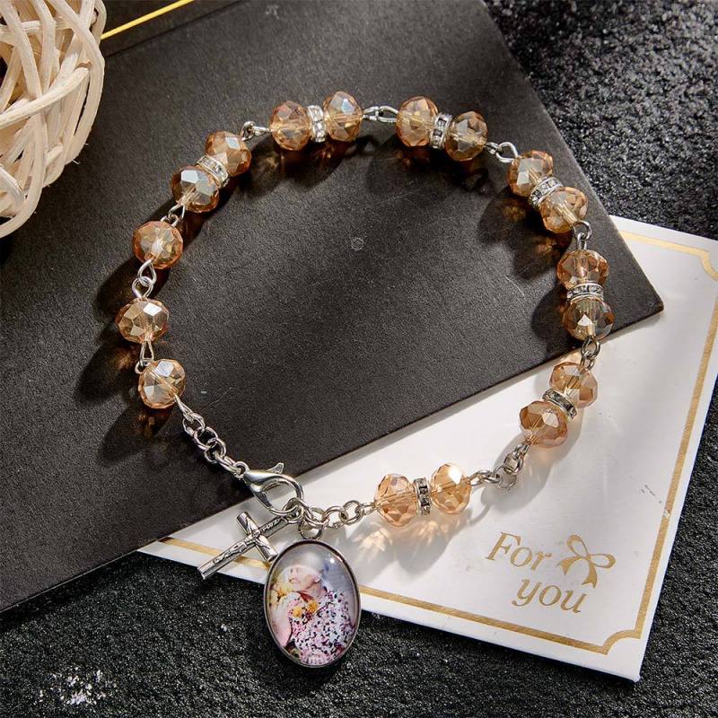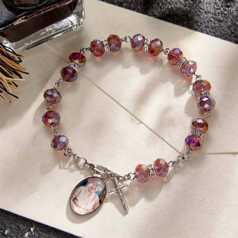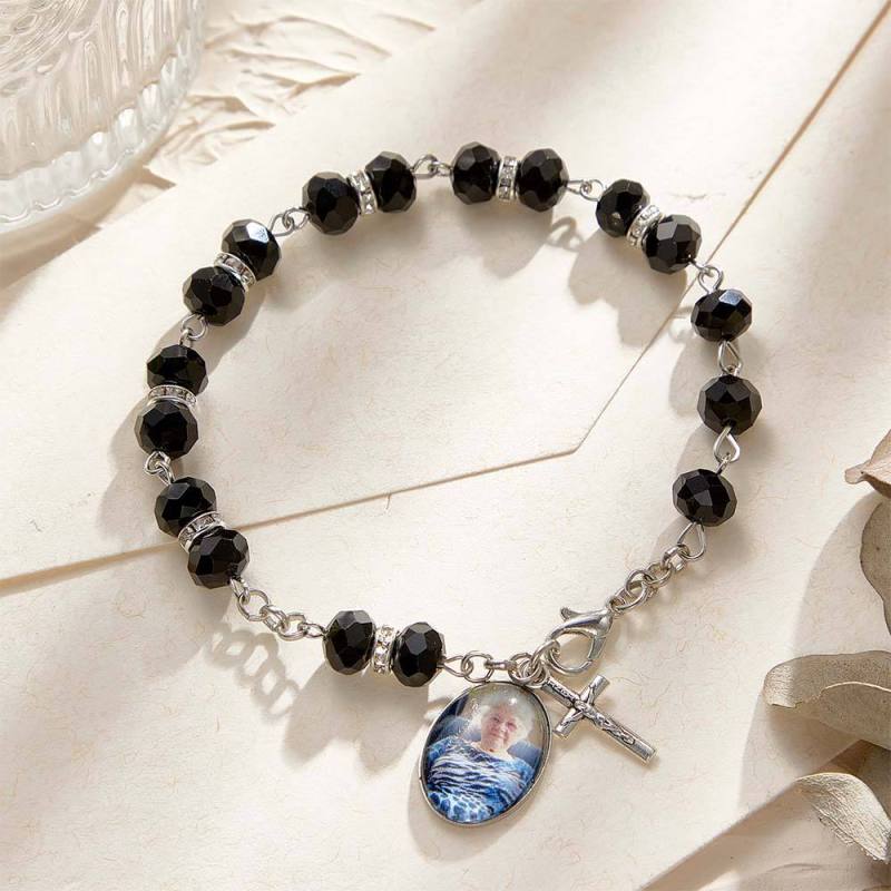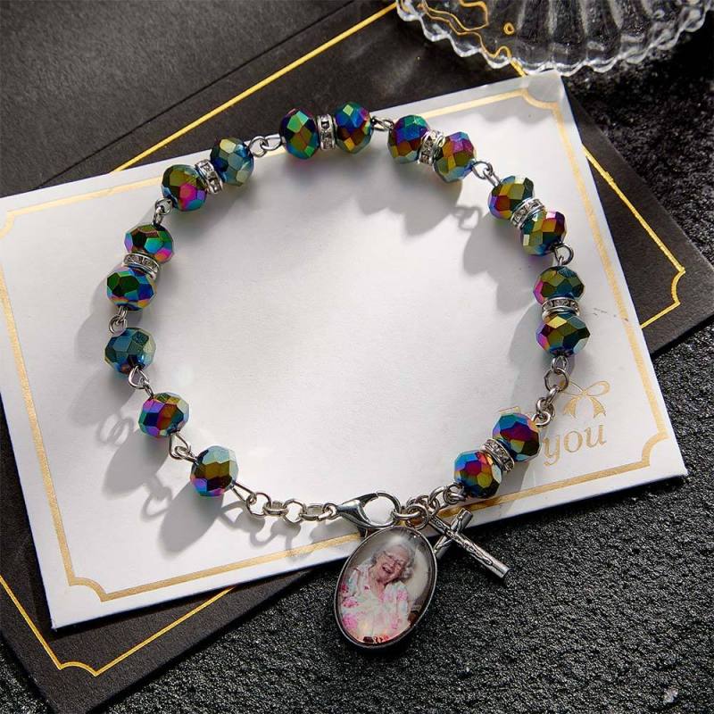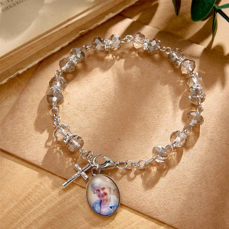 Custom Photo Rosary Beads Cross Bracelet Memorial Gifts Crystal Prayer Personalized Sentimental Gifts for Her