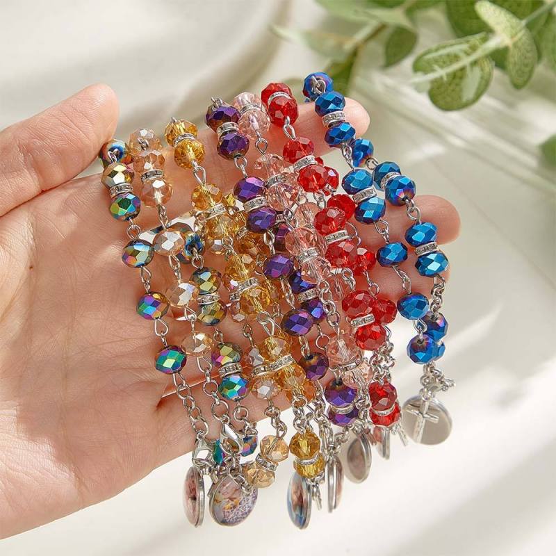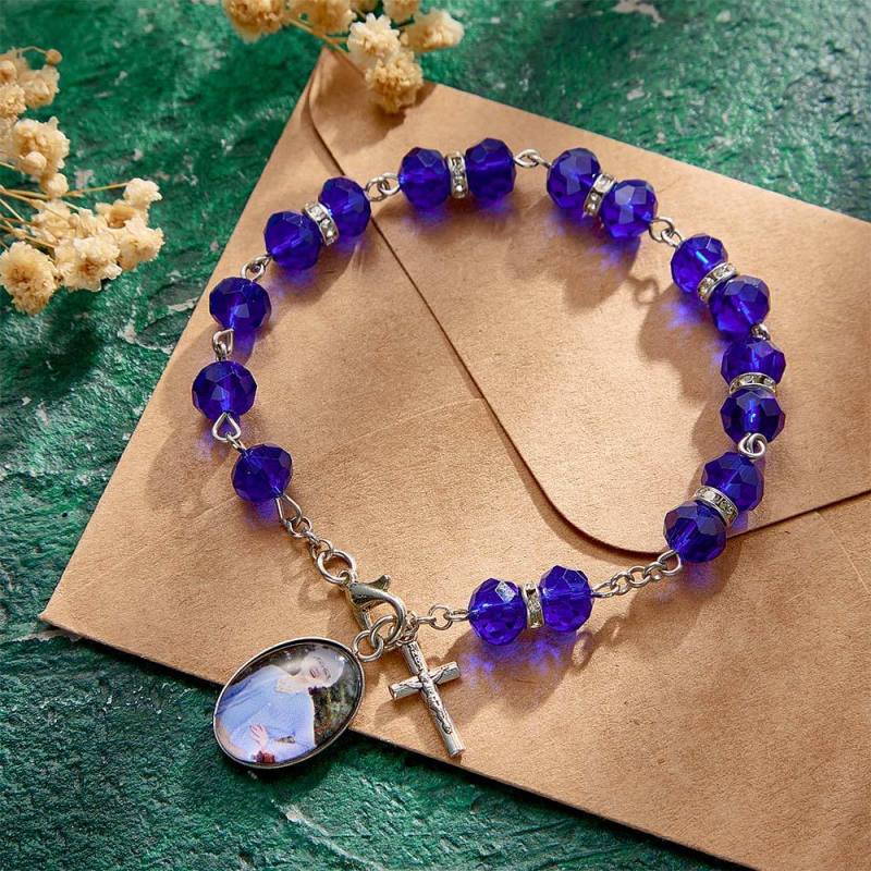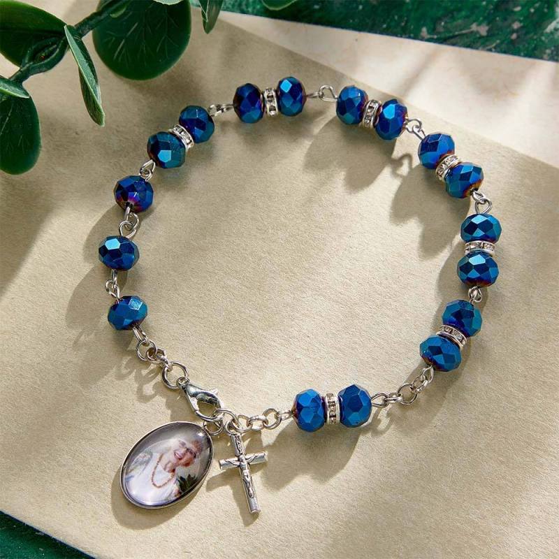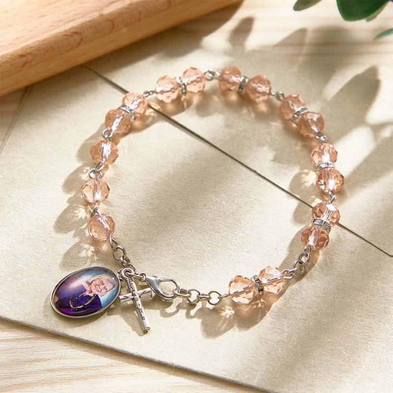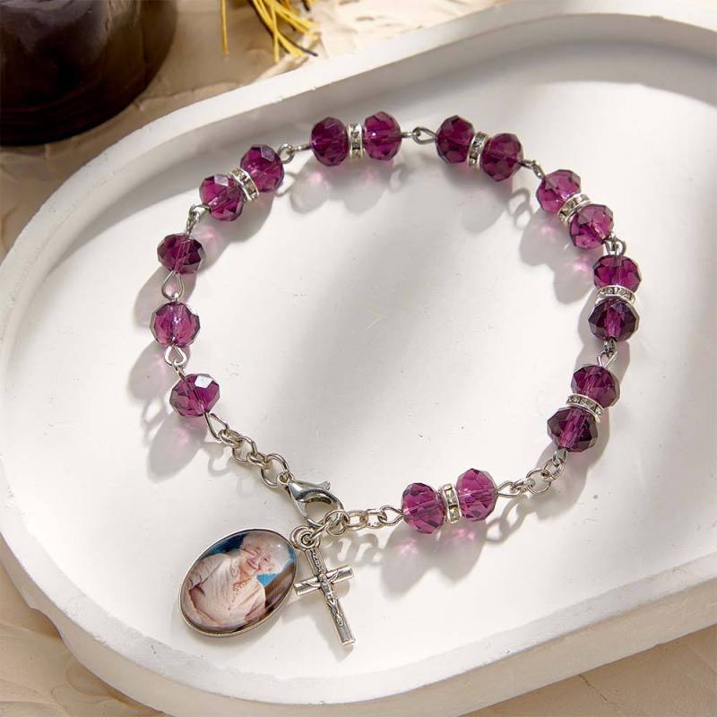 Custom Photo Rosary Beads Cross Bracelet Memorial Gifts Crystal Prayer Personalized Sentimental Gifts for Her