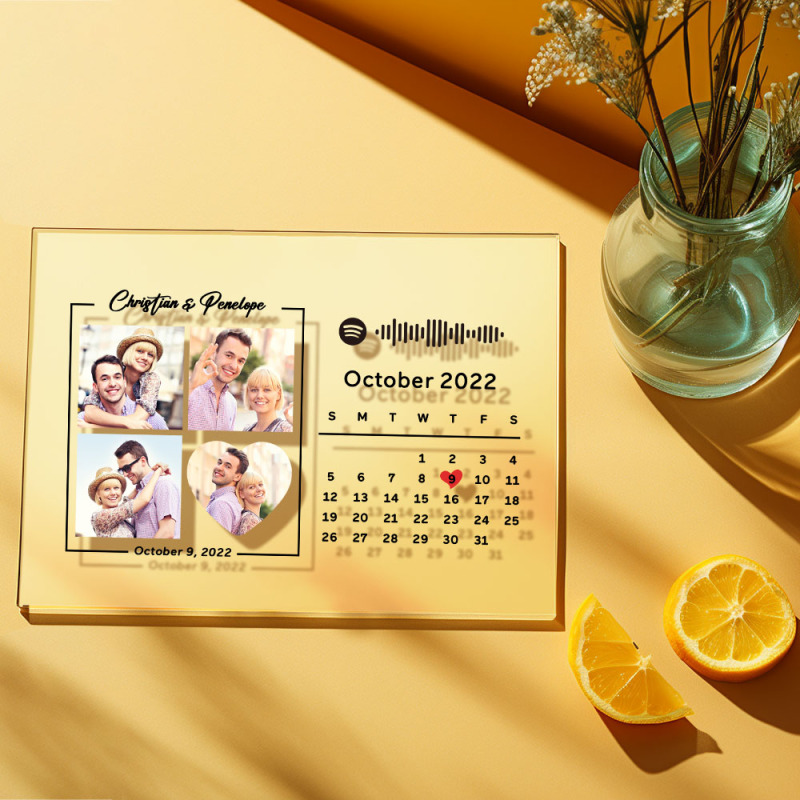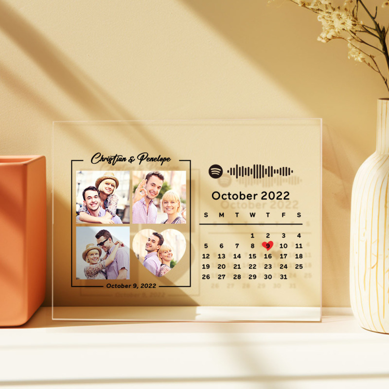 Custom Photos Anniversary Calendar Acrylic Plaque Spotify Home Decor Gift For Couples