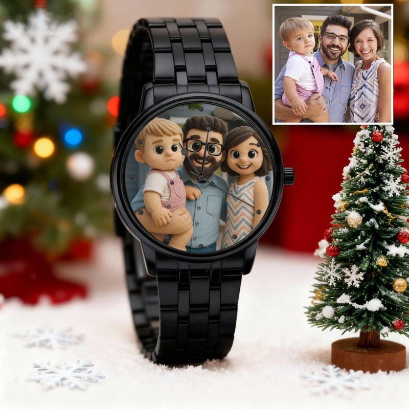 Custom Pixar-Style Plush Portrait Watch|Personalized Cartoon Photo Watch|Unique Gift for Family, Couple, Friend