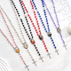 Custom Rosary Beads Cross Multi-Color Necklace Sentimental Memorial Gift Baptism Gift, First Communion Gift, Confirmation, Baby or Little Girl Keepsake Prayer Personalized Necklace with Photo Memorable Gift for Women