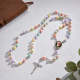 Sentimental Memorial Gift Prayer Custom Rosary Beads Cross Necklace Personalized Acrylic Macaron Color Beads Necklace with Photo