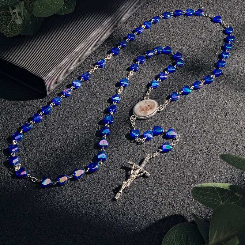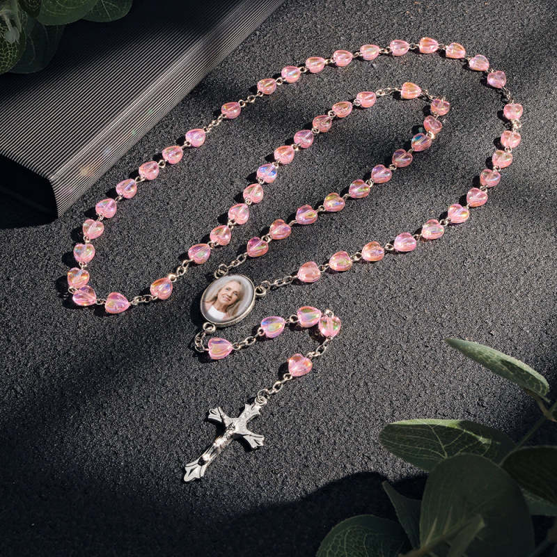 Sympathy Gifts Custom Rosary Photo Necklace Personalized Cross Heart Necklace with Photo