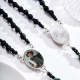 Custom Rosary Beads Cross Necklace Personalized Pattern Black Imitation Agate Necklace with Photo Sentimental Memorial Gifts for Catholics