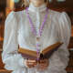 Custom Rosary Beads Cross Necklace Personalized Purple Double Sided Rose Necklace with Photo