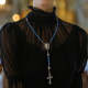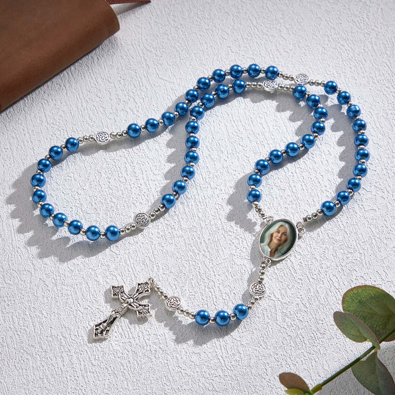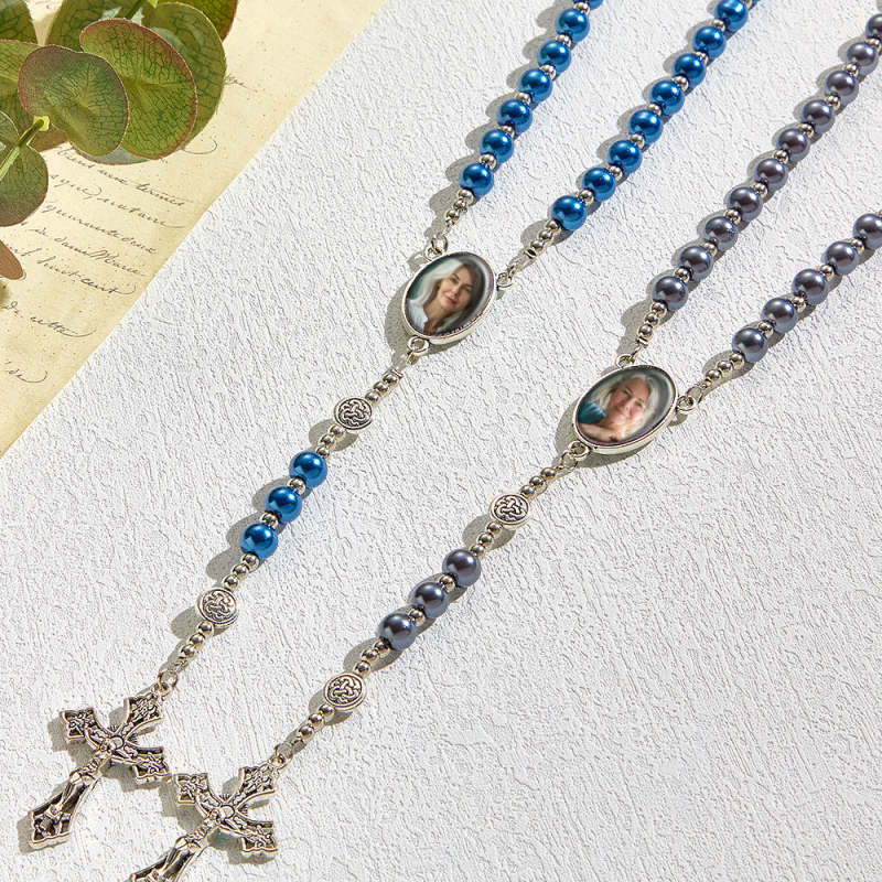 Custom Rosary Beads Cross Necklace Personalized Retro Glass Imitation Pearl Hollow Necklace with Photo