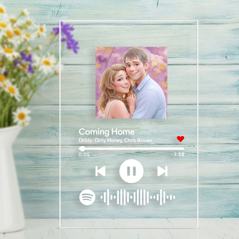 Custom Photo Cartoon Song Poster Scannable Spotify Code Acrylic Music Plaque Night Light Gifts For Her