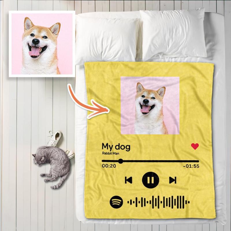 Custom Your Favorite Song Spotify Code Blanket Personalized Dog Photo Blankets