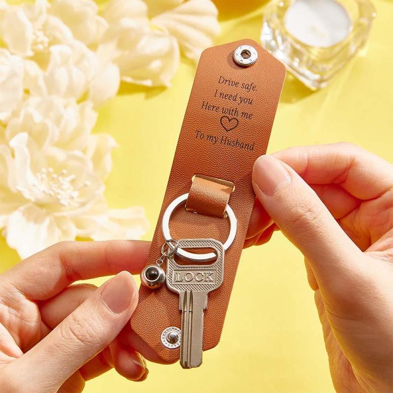 Custom Text Engraved Leather Keychain Personalized Photo Projection Gifts for Him