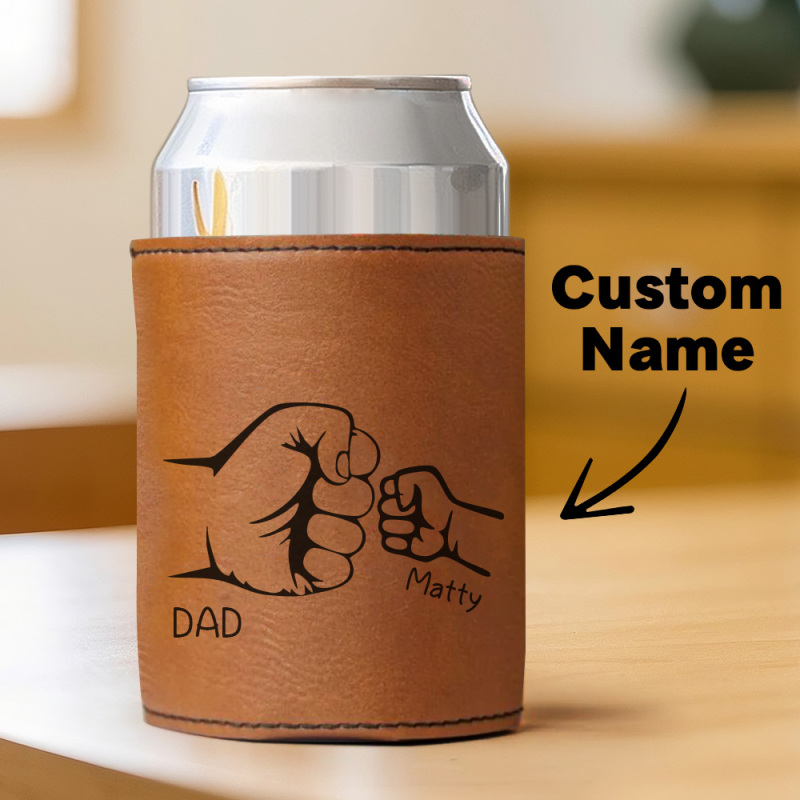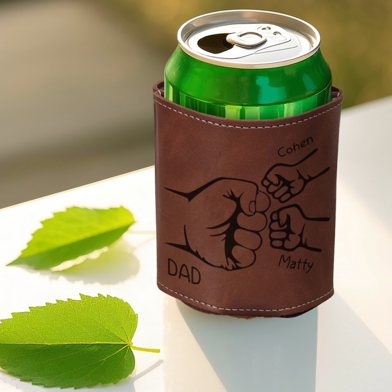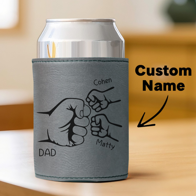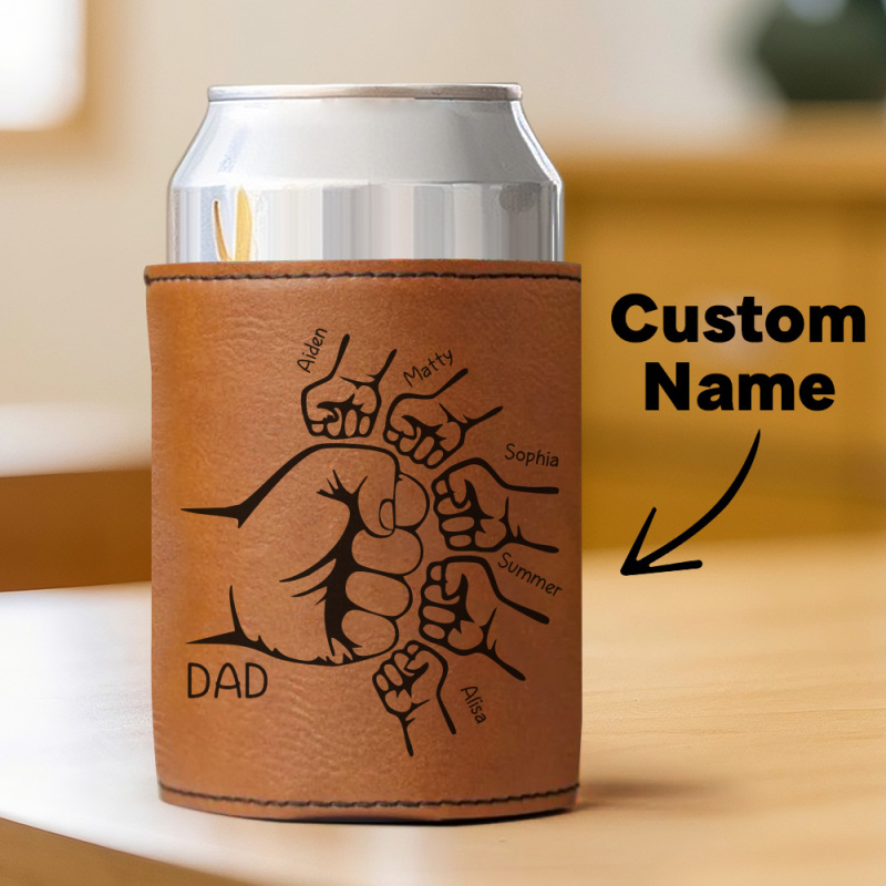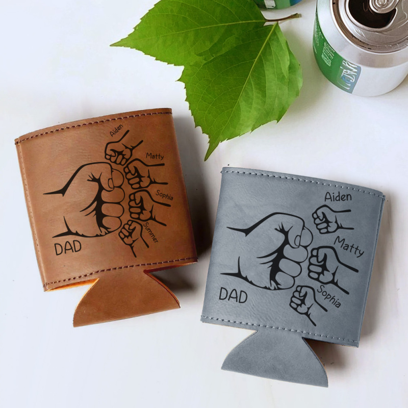 Dad Fist Bump Leather Can Cooler, Fathers Day Gift with Kids Names, Dad Gifts from Kids Dad Birthday Gift Personalized Gift for Dad, Grandpa