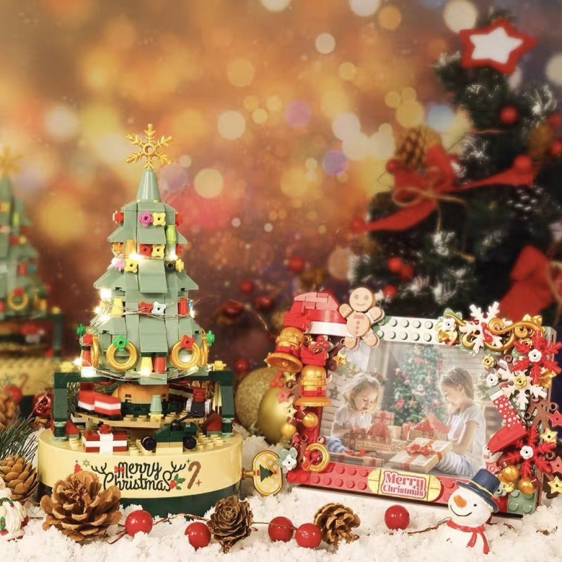 DIY Christmas Tree Building-Block Rotating Music Box | Light-Up Building Block Design | Festive Holiday Gift for Children, Family, Couple