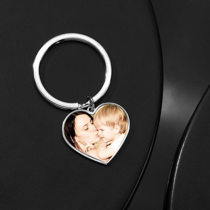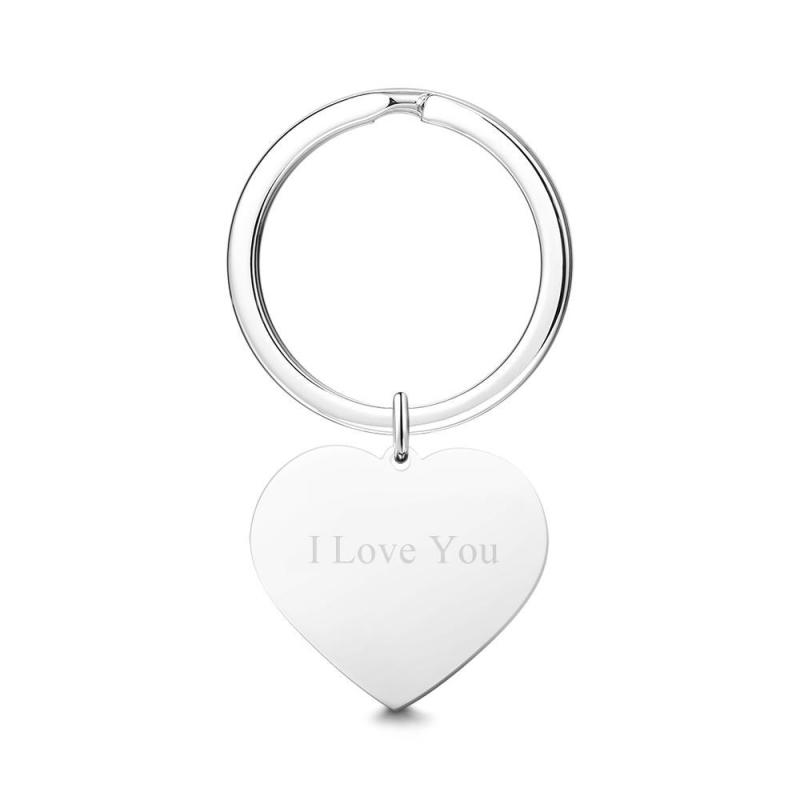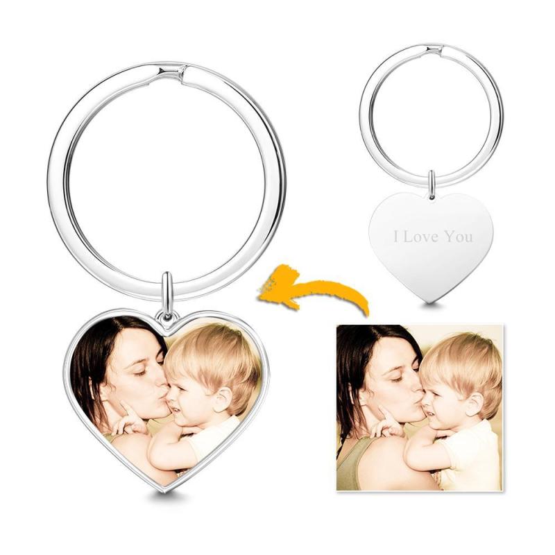 Engraved Heart Tag Photo Keyring Silver
