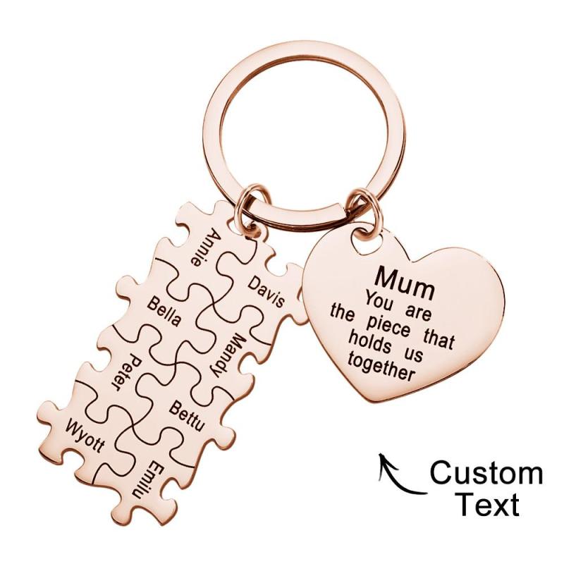 Engraved Puzzle Heart Shaped Keychain Personalized Key Ring Mother's Day Gift