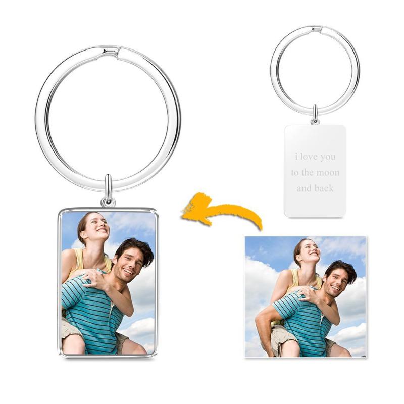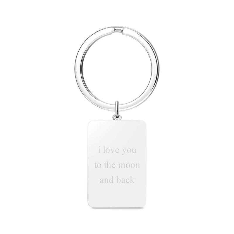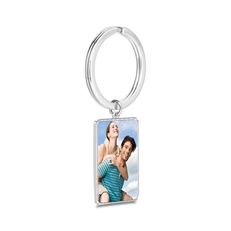 Engraved Rectangle Tag Photo Keyring Silver