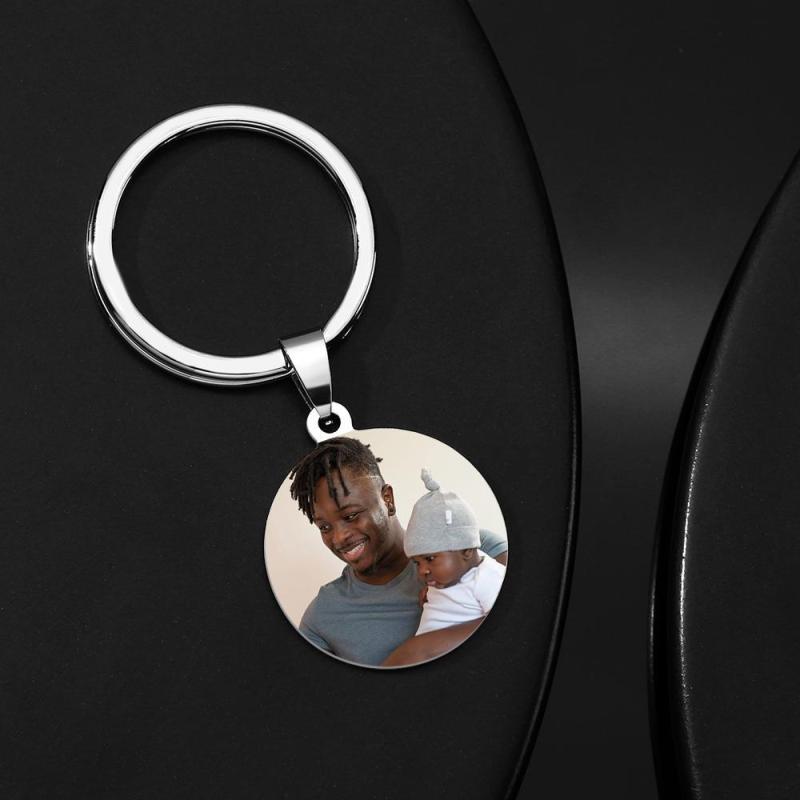Custom Round Tag Photo Keyring Stainless Steel Dad Gifts