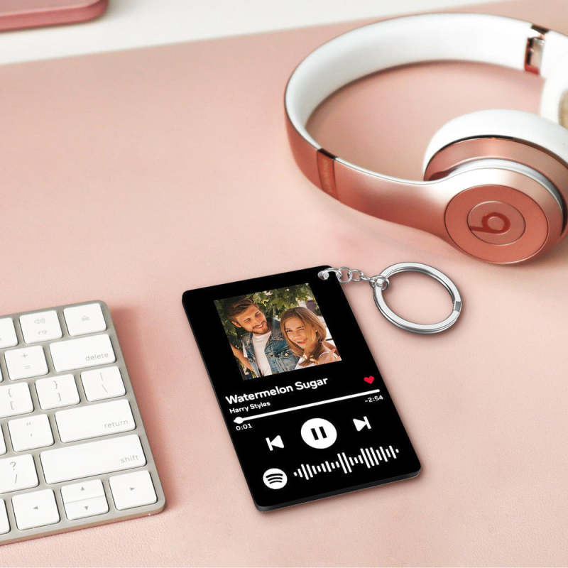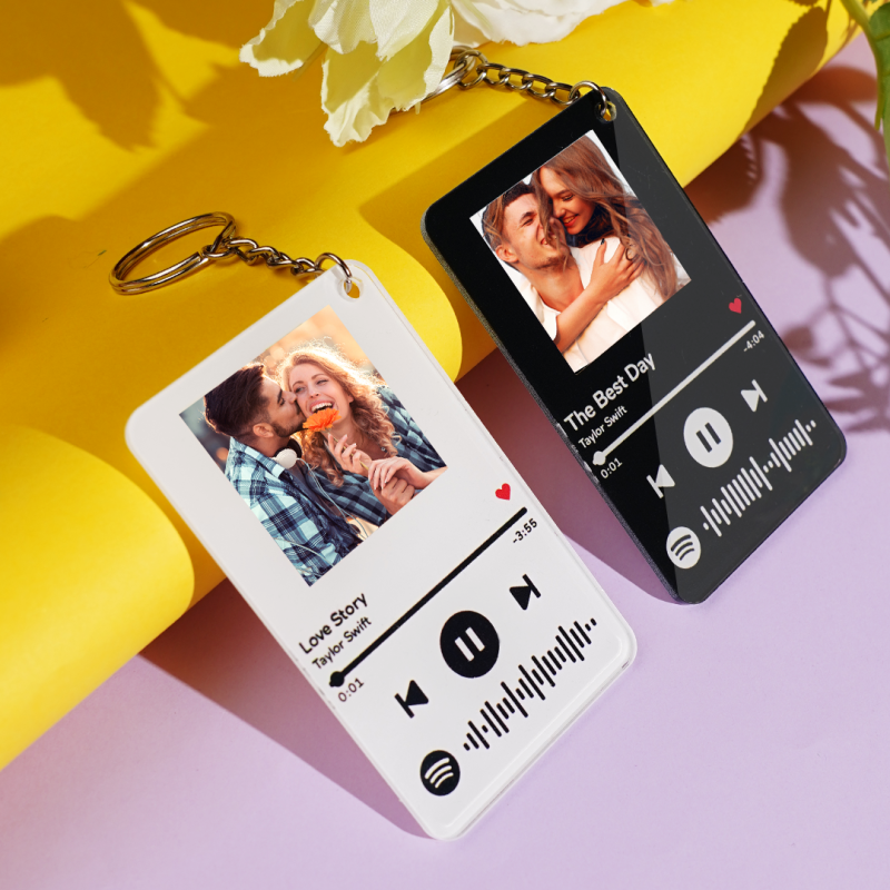 Gift for Her Custom Spotify Keychain Personalized Scannable Keychain White Plaque