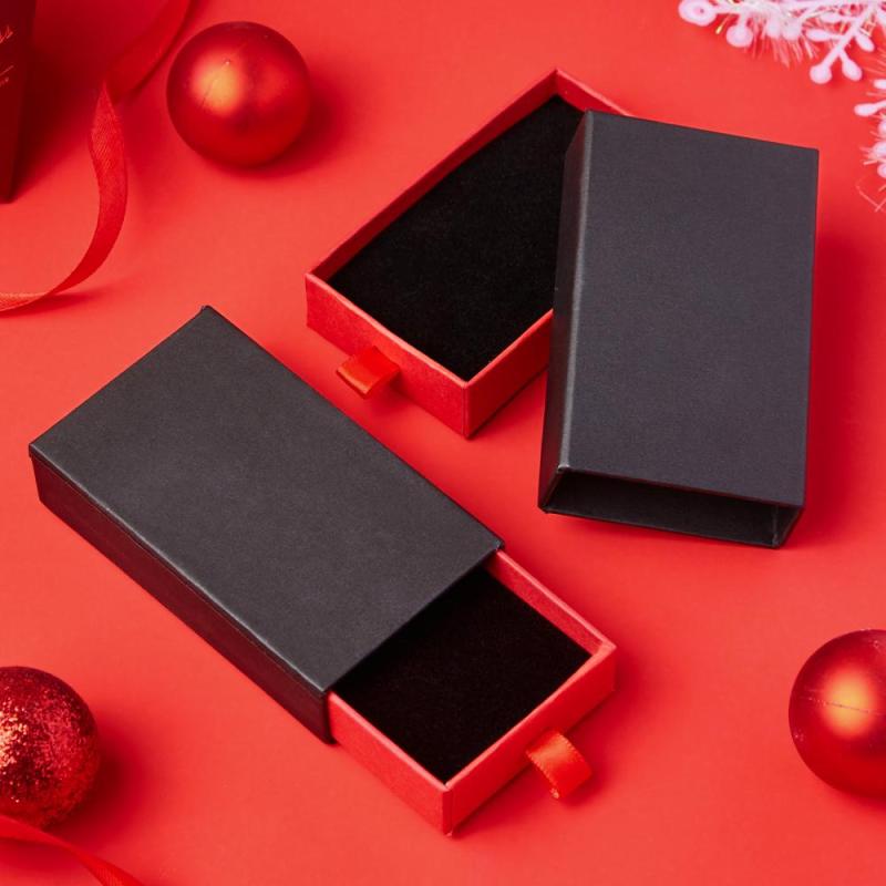 Keychain Box-Kraft Paper Drawer Box Black Gift Box with Sponge for Jewelry Bracelet Ring Gift Packaging