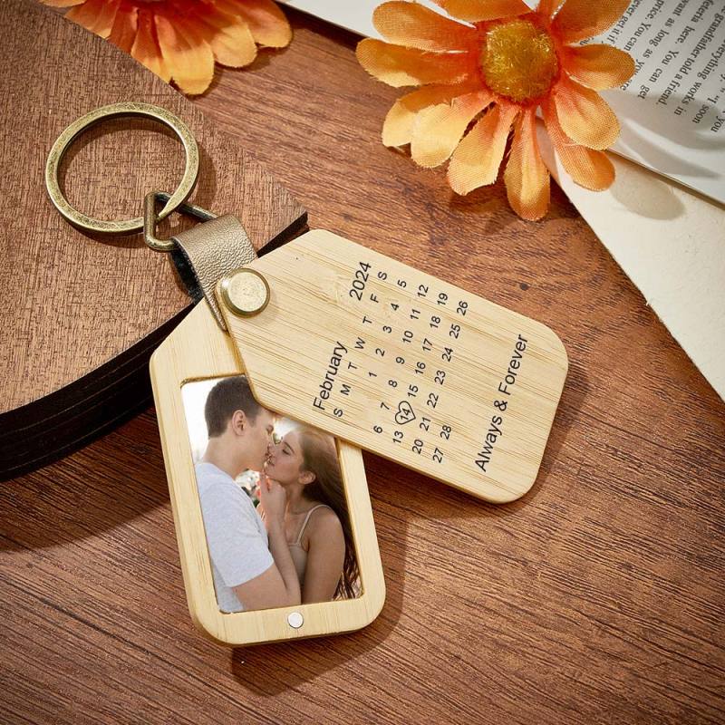 Personalized Calendar Photo Keychain Magnetic Engraved Keychain Valentine's Day Gifts for Him