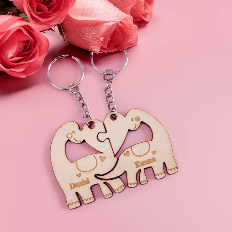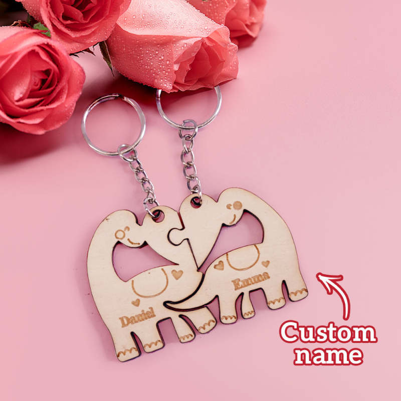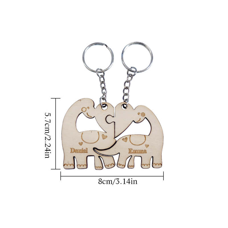 Wooden Couple Matching Keychain Custom Matching Dinosaurs Keychain Valentine's Day Gifts for Lover