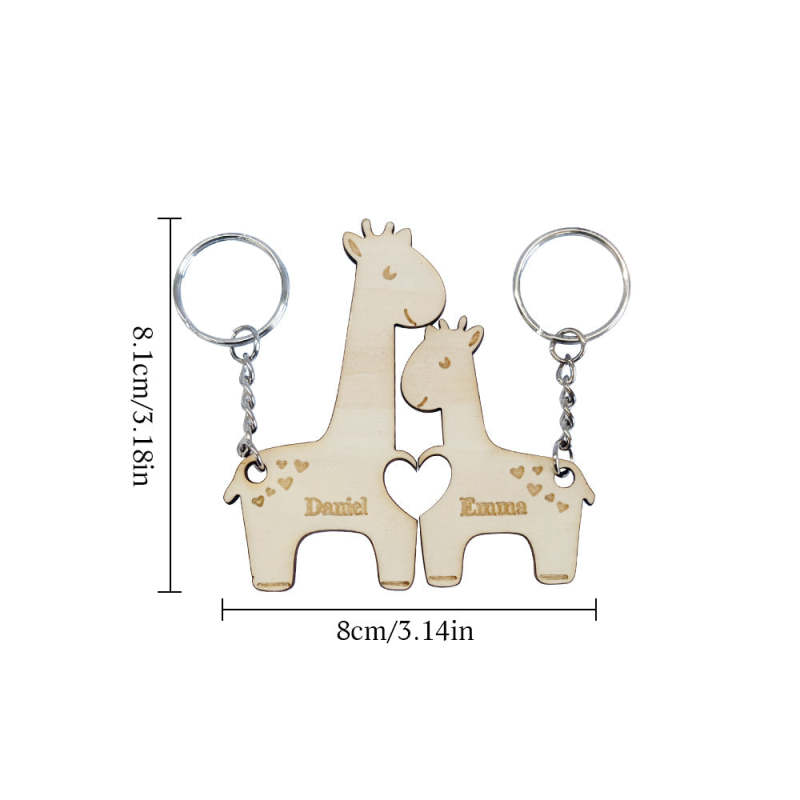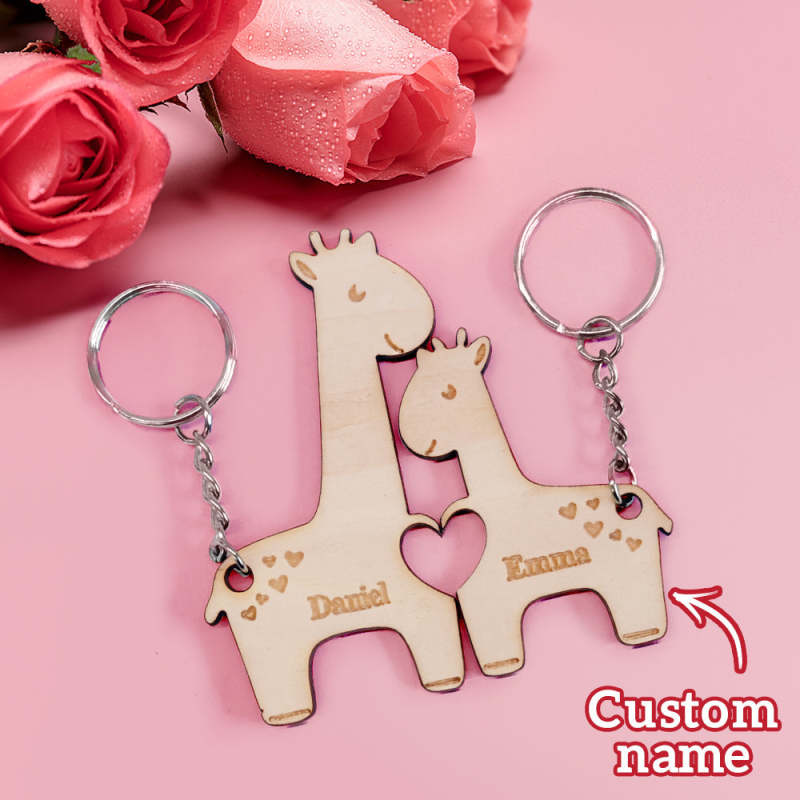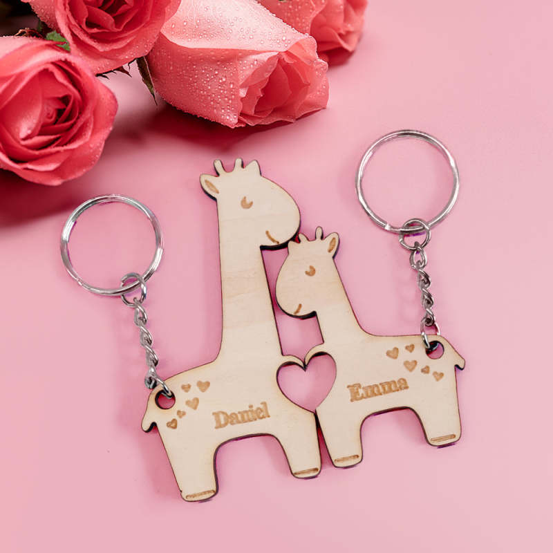 Personalized Wooden Couple Matching Keychain Custom Matching Giraffes Keychain Valentine's Day Gifts for Lover