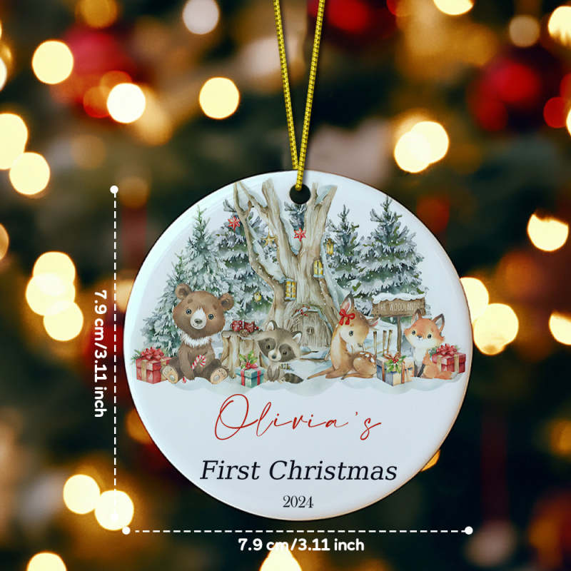 Personalized Cute Animal Ceramic Ornament with Name Baby's First Christmas Ornament Gift