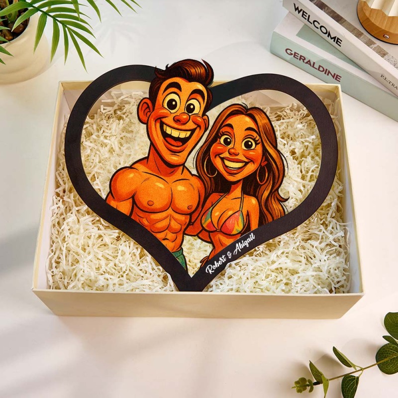 Personalized Heart-Shaped Cartoon Couple Frame|Your Photo Transformed into Custom Illustration|Add Names & Special Dates|Romantic Gift for Couples