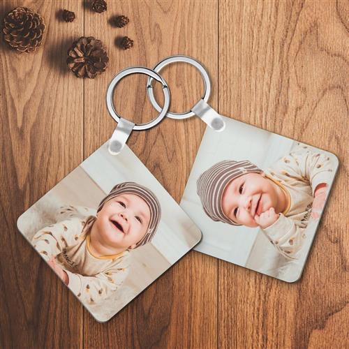 Personalised Keyring Wooden Custom Photo Square Keychain For Baby