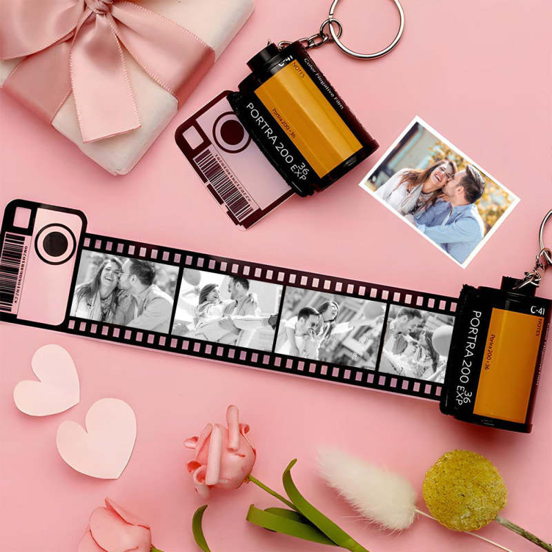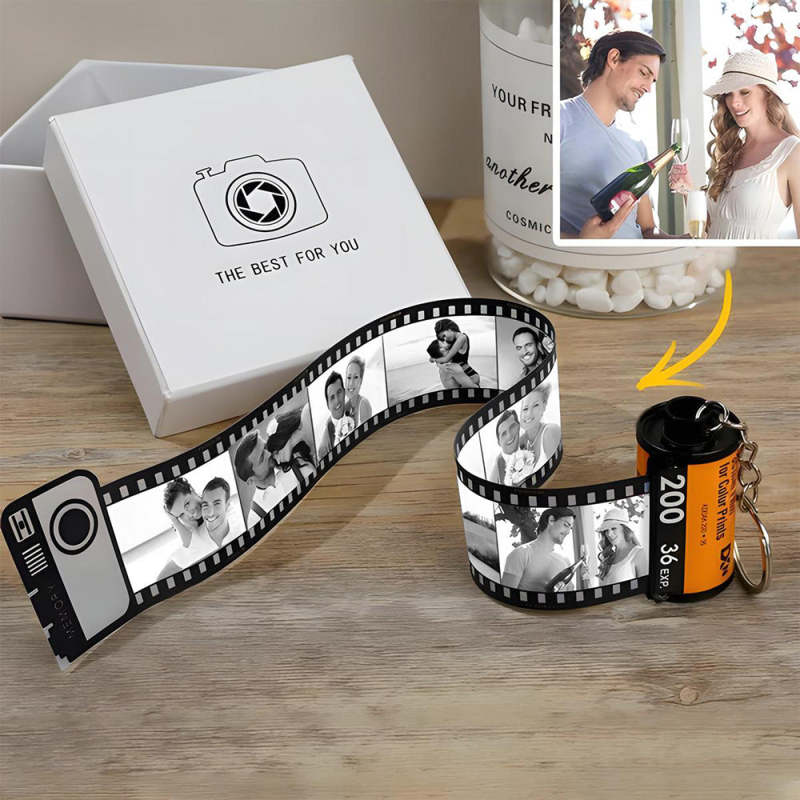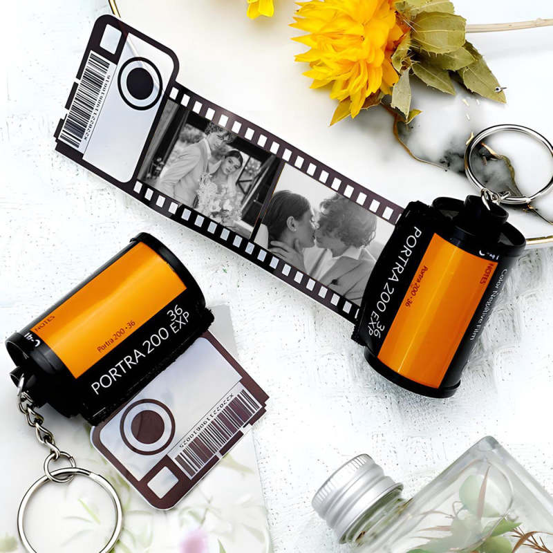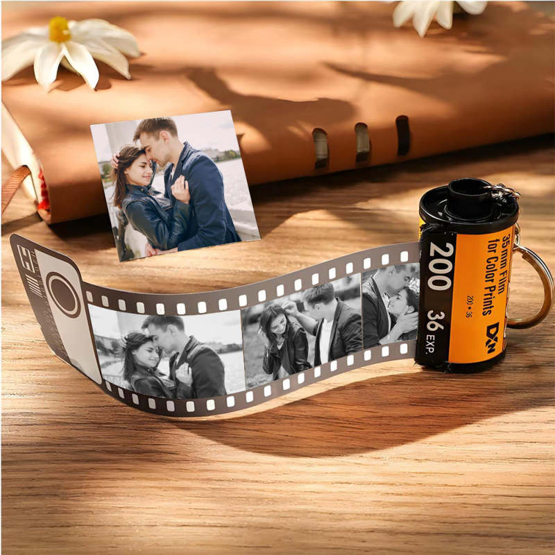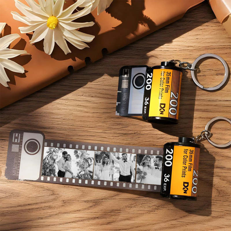 Personalized Wooden Keychains with Picture Vintage Photo Camera Roll keychain Photo Reel Album Frame Key Rings