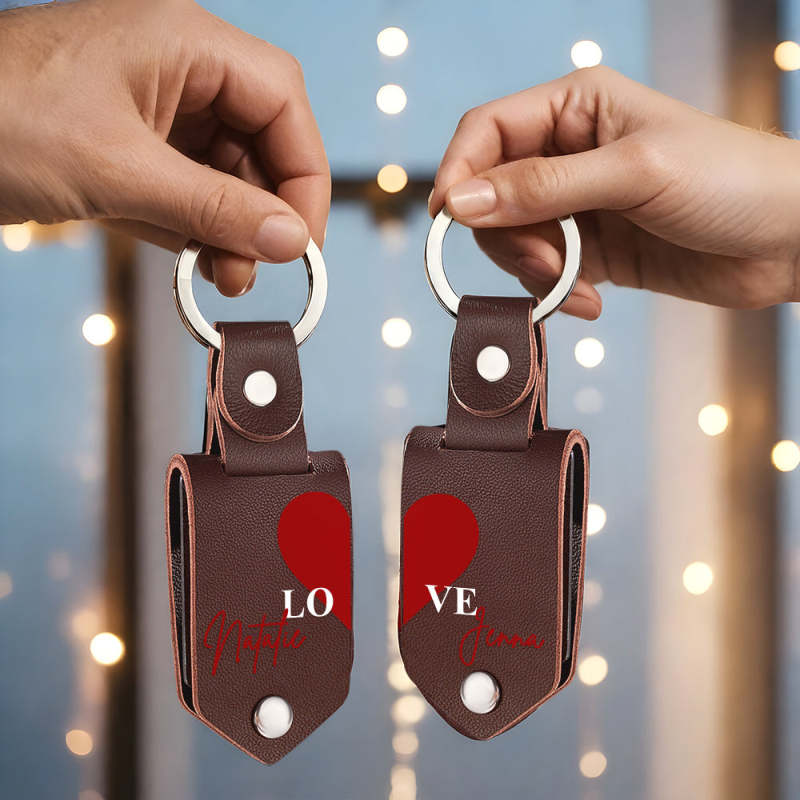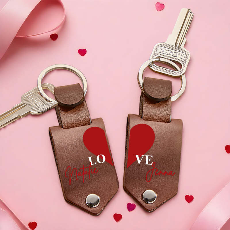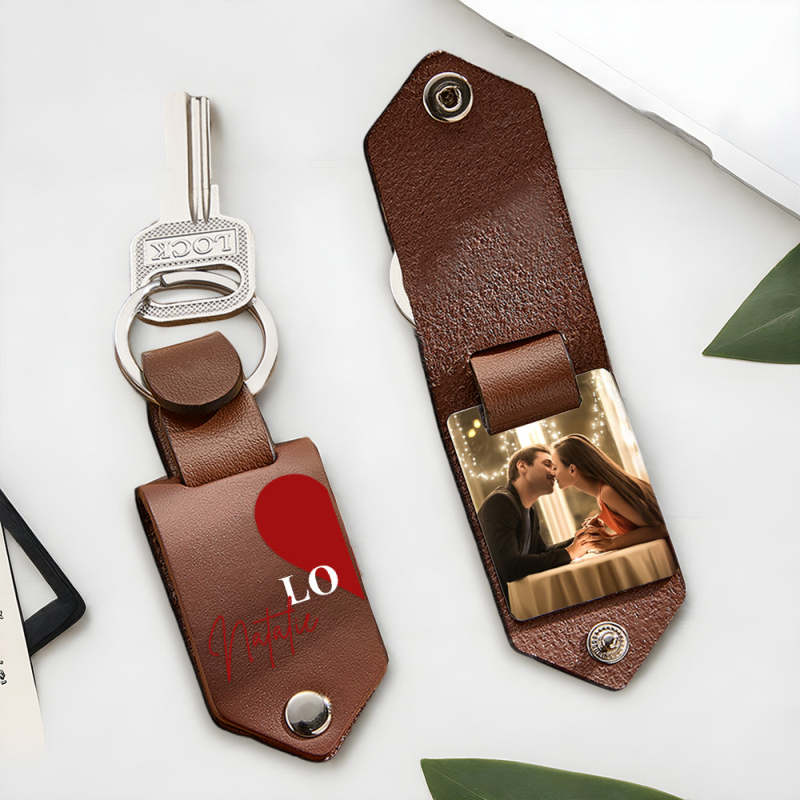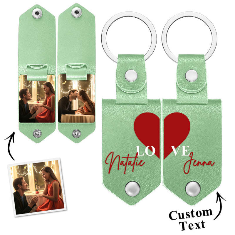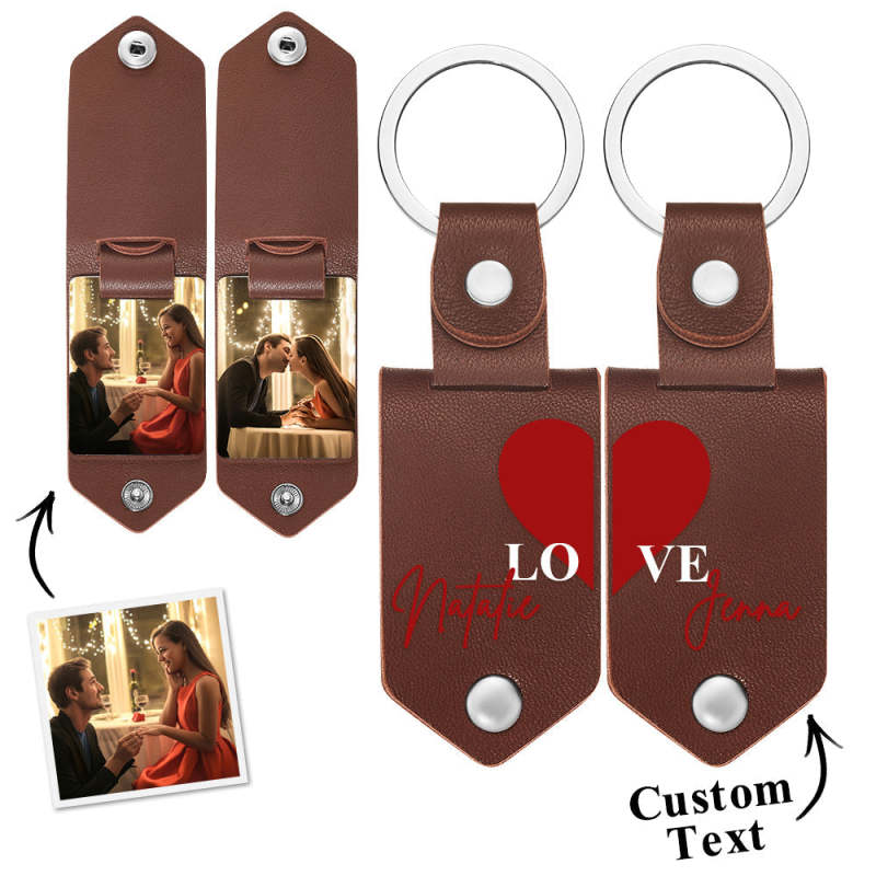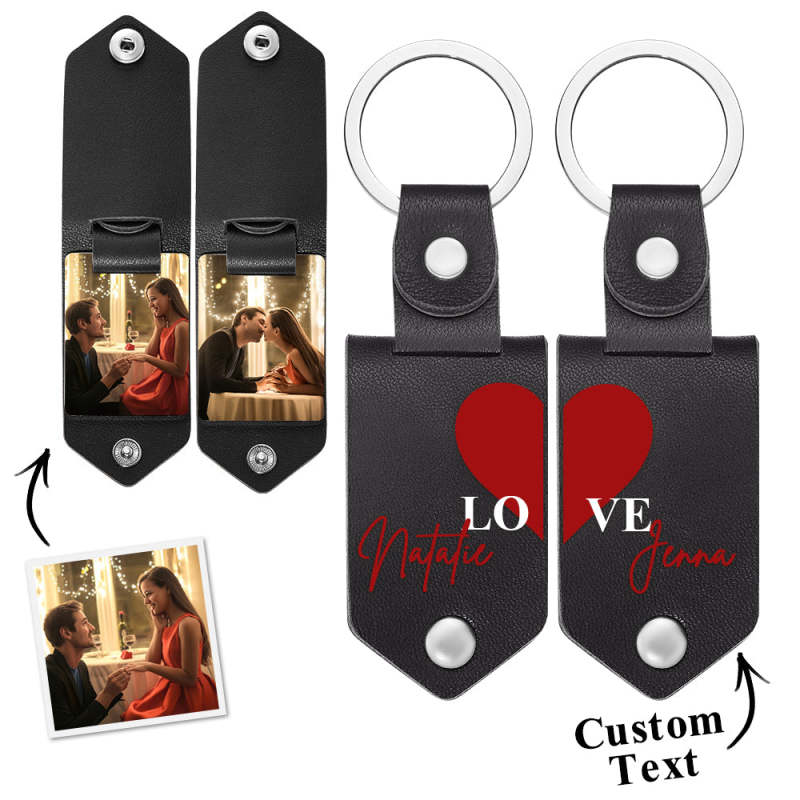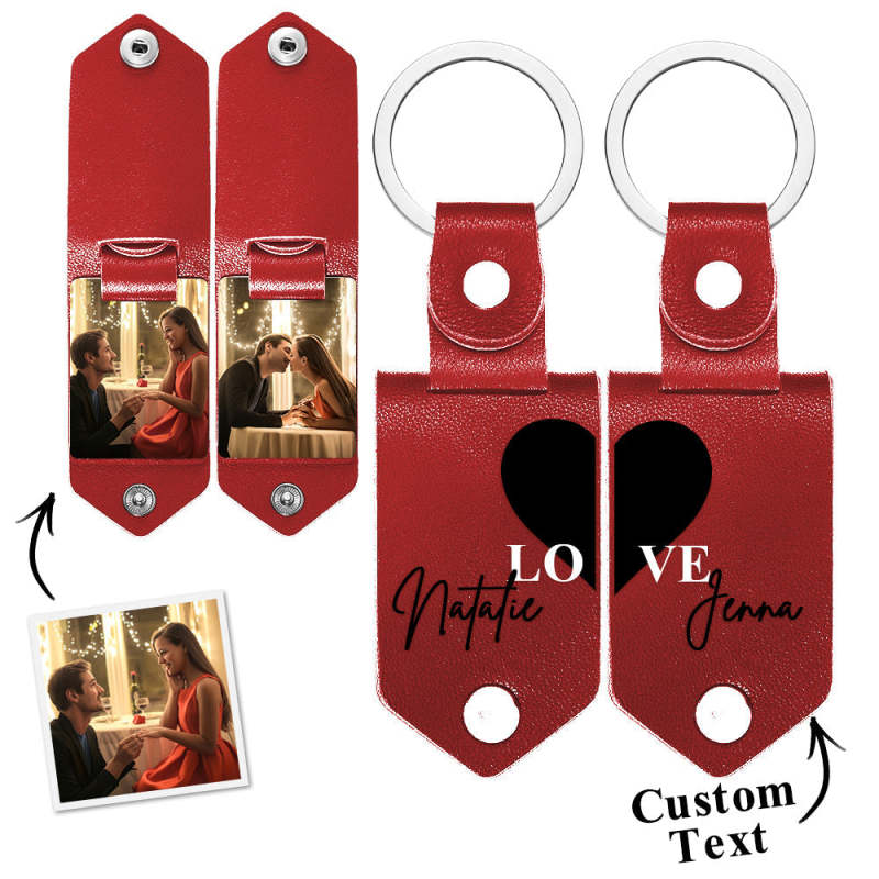 Personalized Photo Keychain Set Custom Leather Photo Keyring 2 pcs Personalized Key Ring Gift