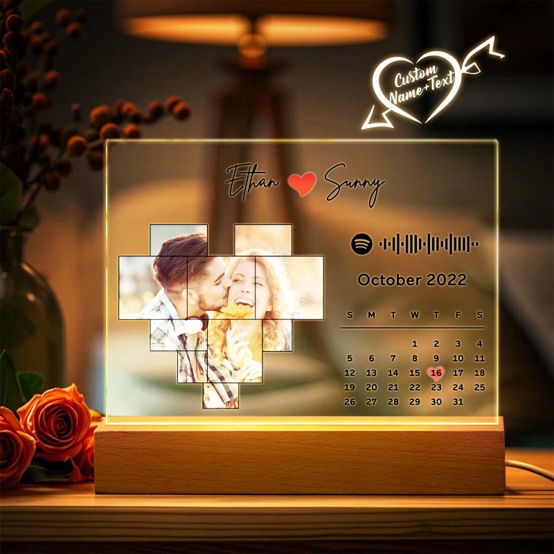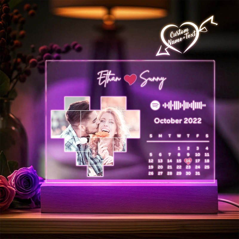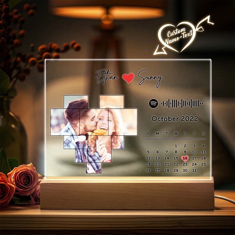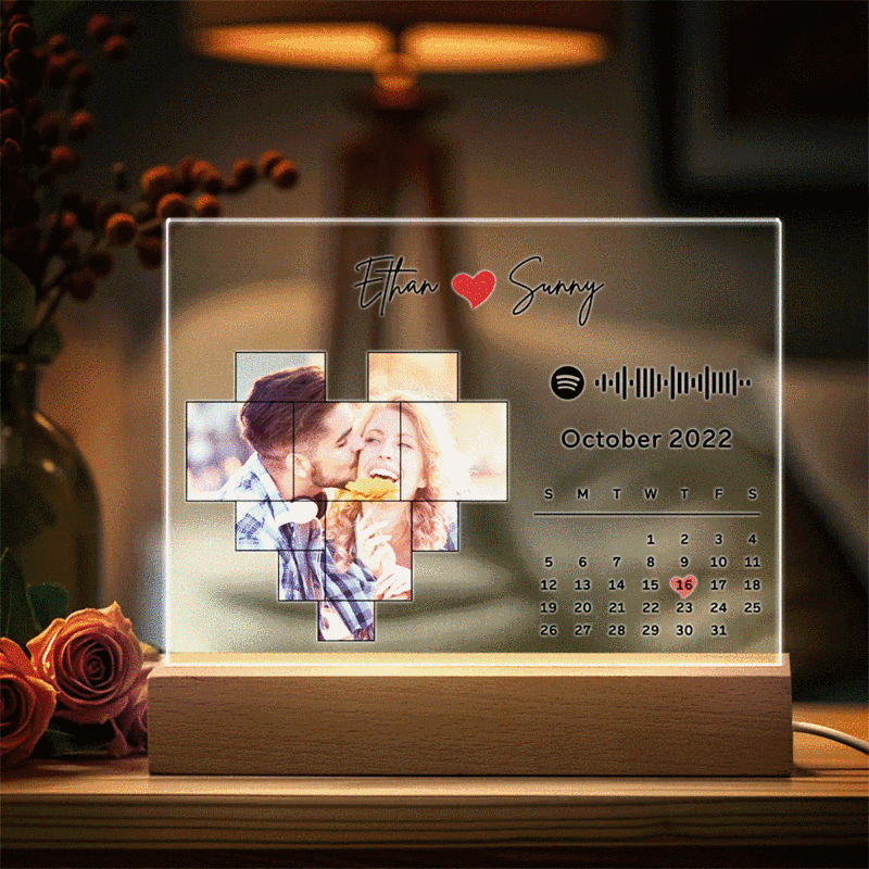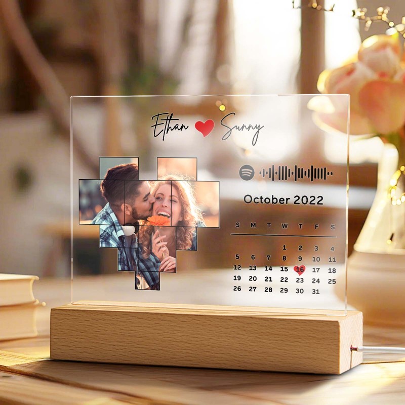 Personalized Spotify Calendar Acrylic Night Light Photo Decor Anniversary Gift For Couples
